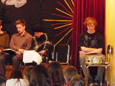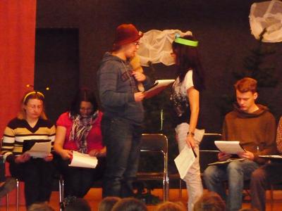 Wojtek: Dzisiaj pani dyrektor miała uszy słonia, a pan Geniu czytał dziwnym głosem. Nasza pani była reżyserem.