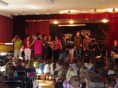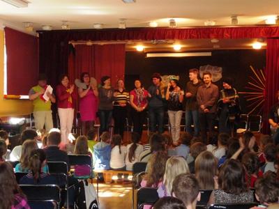 Natalka: Dzisiaj zeszliśmy do auli, gdzie czekała na nas niespodzianka. Pani dyrektor udawała Kaczkę, a wicedyrektor słonia. Niesamowity był pan Eugeniusz jako żółw.