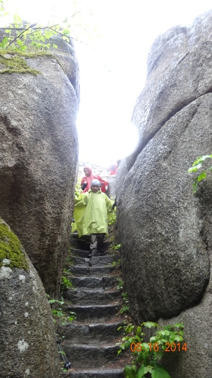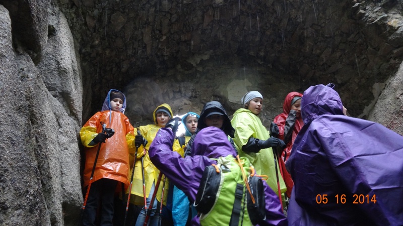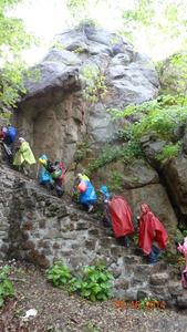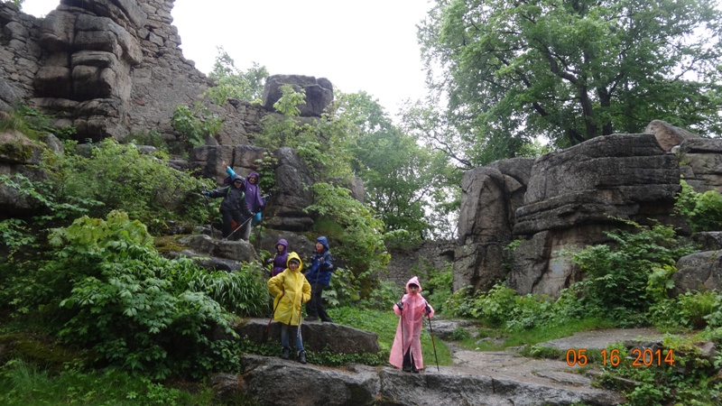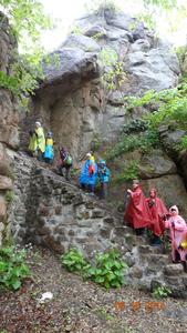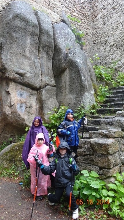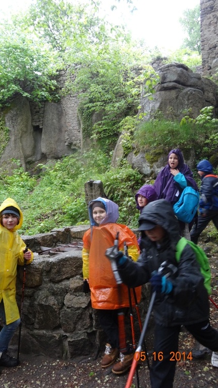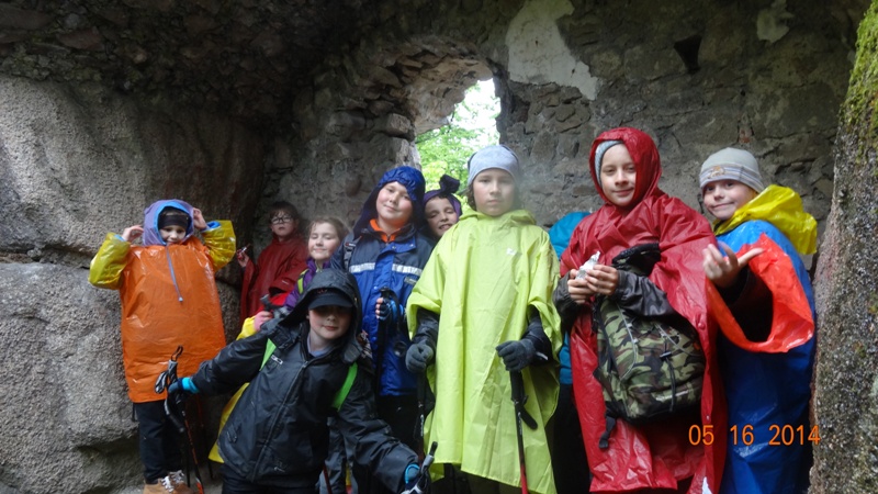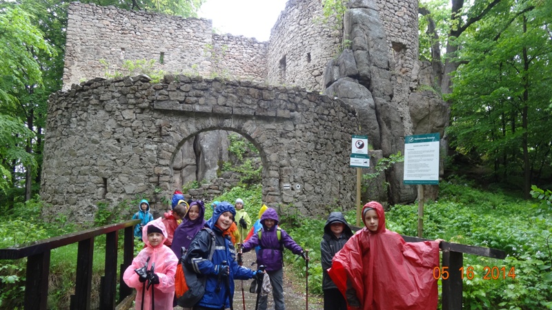 Po drodze zwiedziliśmy zamek Bolczów, podziwialiśmy Skalny Most, Piec i Fajkę. Na Przełęczy Karpnickiej zostaliśmy zupełnie przemoczeni, gdyż nieprzerwalnie padał deszcz. W schronisku PTTK „Szwajcarka” zjedliśmy obiad. Następnie zdobyliśmy Sokolik Duży (623m n.p.m) i zeszliśmy do Trzcińska, skąd wróciliśmy ostatnim pociągiem do Janowic .