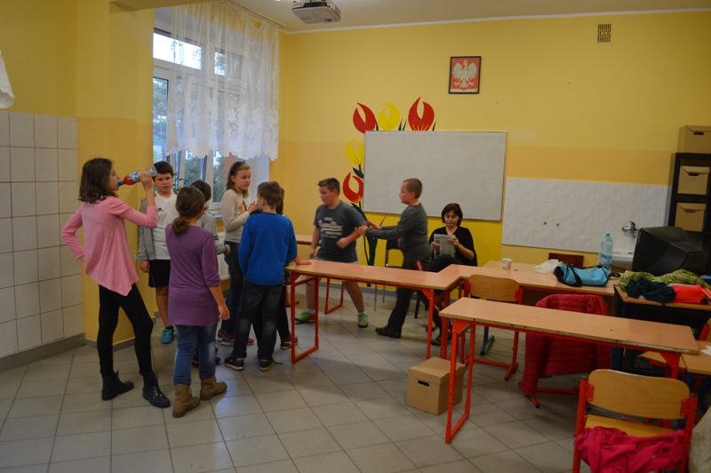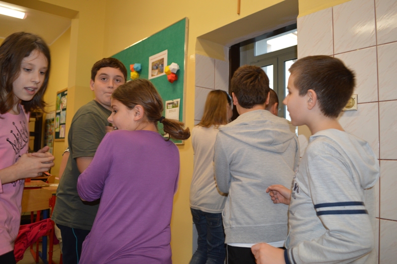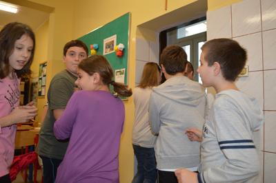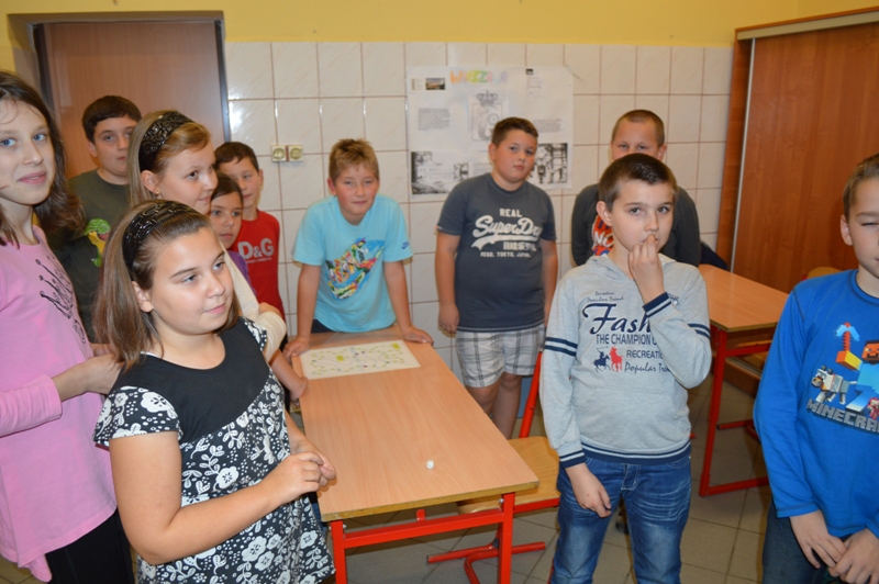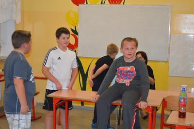 Tradycyjnie, raz w semestrze, uczniowie aktualnej klasy piątej mają okazję bawić się podczas klasowych spotkań integracyjnych. Tym razem uczniowie wzięli udział w niezwykle żywiołowej grze w "Pięćdziesiąt", która wymagała od uczestników, dobrej kondycji fizycznej, dużo sprytu i wiele szczęścia. Zabawa tak spodobała się uczestnikom, że już planują drugą edycję – tym razem w plenerze.