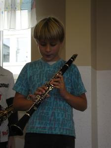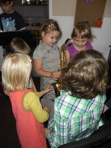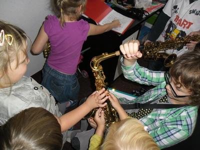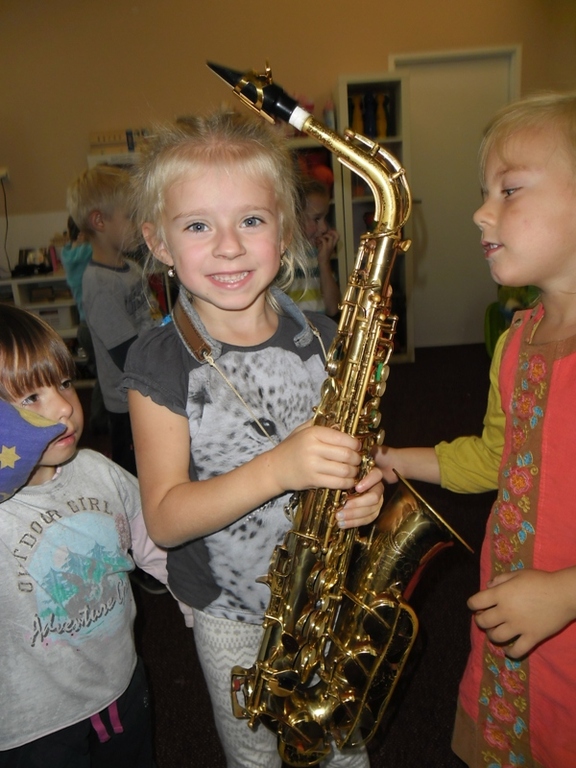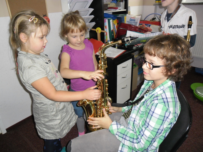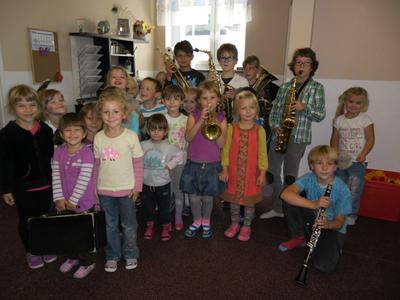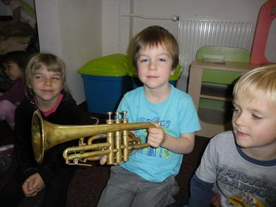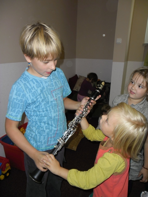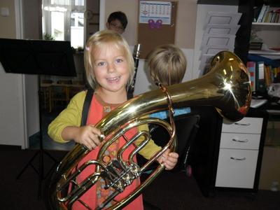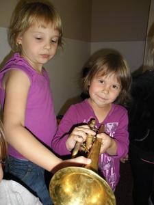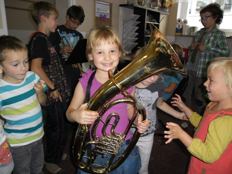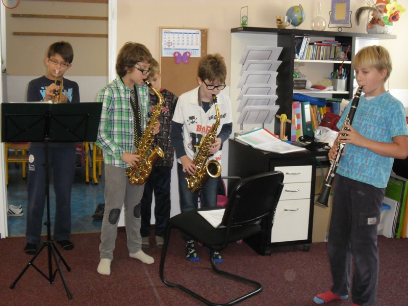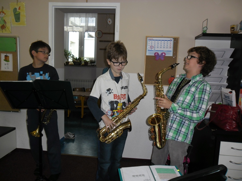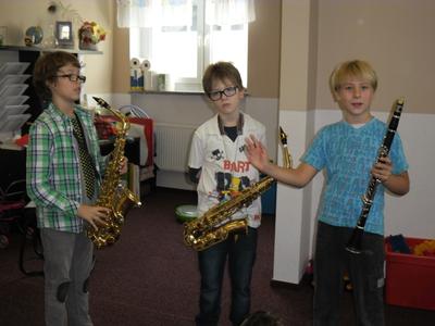 "Nadęta Piątka", czyli mini orkiestra dęta, którą tworzą chłopcy z klasy IV, zawitała niedawno w zerówce. Dzieci szeroko otwierały buzie: ooo!, a okazją do występów była poznawana literka "o", jak "orkiestra". Występ starszych kolegów wzbudził ogromne zainteresowanie, choć niektórzy trochę zasłaniali uszy z powodu głośnych wrażeń muzycznych :) Nadęte Chłopaki, my, Ekoludki, jesteśmy Waszymi fanami!