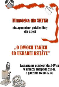 Filmoteka Smyka Zdjęcia Zobacz również Kiermasz Mikołajkowy Świąteczny Pchli Targ Pasowanie Ekoludków Filmoteka Smyka Konkurs na „rodzinny stroik świąteczny” Andrzejki w piątej klasie 27 listopada 2014 Aktualności Wydrukuj Udostępnij Wyświetlono: 520