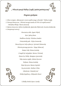 W piątek, 5 grudnia o godzinie 18.00, w Zespole Szkół im. Konstytucji 3 Maja odbędzie się „Wieczór poezji Haliny Czajki i pieśni patriotycznej”. Podczas tego wieczoru przypomnimy sobie historię narodu polskiego od momentu odzyskania niepodległości aż do dnia dzisiejszego. Narracja historyczna przeplatana będzie poezją i pieśnią patriotyczną. Serdecznie zapraszamy