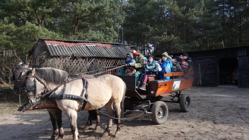 „Sportowo na wesoło” było hasłem przewodnim tegorocznego zimowiska, które odbyło się w prawdziwie wiosennych warunkach. W terminie 21-27 lutego, w Puszczy Noteckiej, bez komputerów, telefonów i telewizji na nowo odkryliśmy radość płynącą z zabaw i gier na świeżym powietrzu. Bogaty program zajęć, a wśród nich m.in.: jazda konna, przejazd bryczką, ognisko, rękodzieło, turniej gier planszowych, wyjazd na kręgielnię, dyskoteki z nauką tańców integracyjnych, gry terenowe dostarczył wielu pozytywnych emocji i uśmiechów. Największym zaangażowaniem cieszyły się wieczorne podchody „Dziewczęta vs. Chłopcy” podczas, których drużyny wzajemnie przygotowały dla siebie zadania-wyzwania do wykonania. Przekonaliśmy się również na własne oczy, że w Puszczy Noteckiej również i zimą tętni życie. Wystarczy tylko w ciszy rozejrzeć się dookoła siebie, by dostrzec sarnę czy zająca. Niektórzy nawet słyszeli w nocy wycie wilka, ale to już zupełnie inna historia. Urokliwe miejsce naszego pobytu, a przede wszystkim wyjątkowa postawa każdego z uczestników sprawiły, że w gronie przyjaciół czuliśmy się jak w domu.
