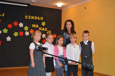 Drodzy uczniowie - gratuluję wspaniałych wyników dydaktyczno - wychowawczych i świadectw, dyplomów ukończenia oddziału przedszkolnego, odznak wzorowego ucznia, nagród i dyplomów za wyróżniające wyniki w nauce i zachowaniu, Piotrowi Szymiec gratuluję Stypendium Uniwersyteckiej Szkoły Kształcenia Indywidualnego, Michalinie Płoska gratuluję Stypendium Prezesa Rady Ministrów. Jesteśmy z Was dumni!