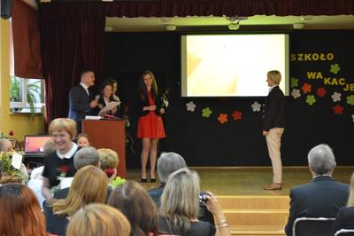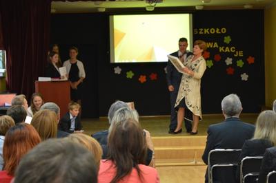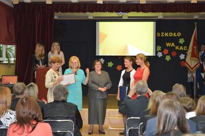 Chcę w sposób szczególny podziękować Pani Burmistrz, Państwu Radnym, Pani Radnej Powiatu, Pani Przewodniczącej Rady Osiedla i przyjaciołom szkoły za szczerą życzliwość okazywaną naszej szkole, za wzbogacanie szkolnych przedsięwzięć i współdziałanie w organizowaniu ciekawych zajęć i imprez dla młodzieży.