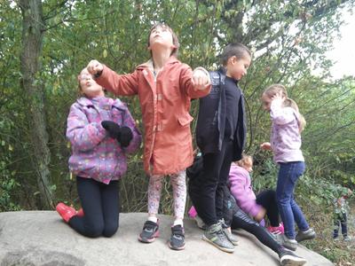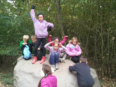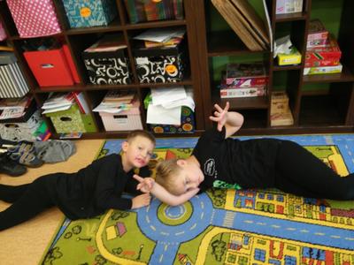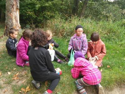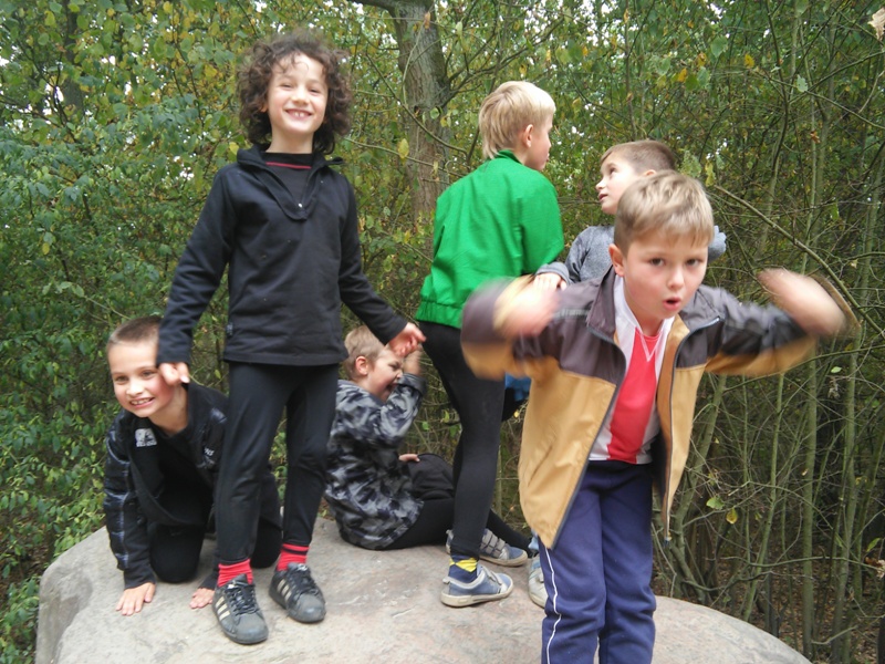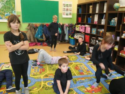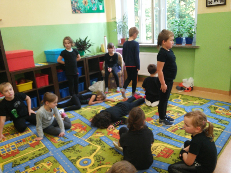 Uczniowie klasy II b biorą udział w programie:” Wychowanie przez teatr”. W każdą środę uczestniczą w zajęciach teatralnych. Długo nie mogli zdecydować się jak nazwać swój zespół. Dziewczynki chciały nazywać się „Czarne Koty” . Jednak ta nazwa nie spodobała się chłopcom. Po długiej i burzliwej dyskusji doszło do ugody” . Zespół z klasy II b przyjął nazwę :”Czarne Pumy”. Tak więc „Czarne Pumy” zaczynają tworzyć teatr. Pracują nad artykulacją, doskonalą dykcję i pokonują swoje lęki, a przy tym doskonale się bawią, nie tylko w klasie , ale na świeżym powietrzu, w lesie i na polanie. Chcą być bliżej natury.