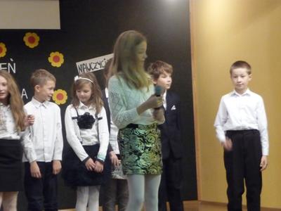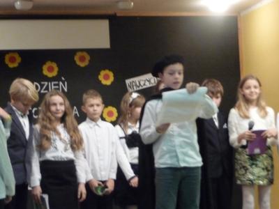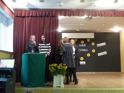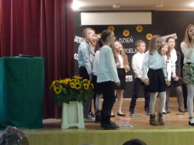 Dnia, 14 października , obchodziliśmy w całym kraju Dzień Edukacji Narodowej. Uczniowie Zespołu Szkół, pod kierunkiem pani Elżbiety Brussy i pani Beaty Jerzyńskiej, przygotowali program artystyczny dla nauczycieli i pracowników szkoły. Podziękowali nauczycielom za ich pracę, wrażliwość i dobre słowo.