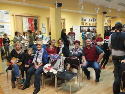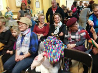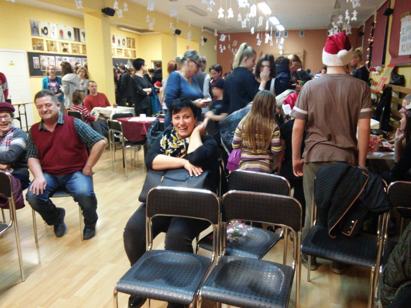 „ Czarne Pumy”. Energicznie wkroczyli na scenę. Tańcząc i śpiewając ożywili atmosferę kiermaszu. Złożyli wszystkim serdeczne życzenia świąteczne i noworoczne, a następnie zdjęli kapelusze i zeszli ze sceny zbierając datki do kapeluszy. Zebrali prawie 70 zł. Jestem z Was bardzo dumna.