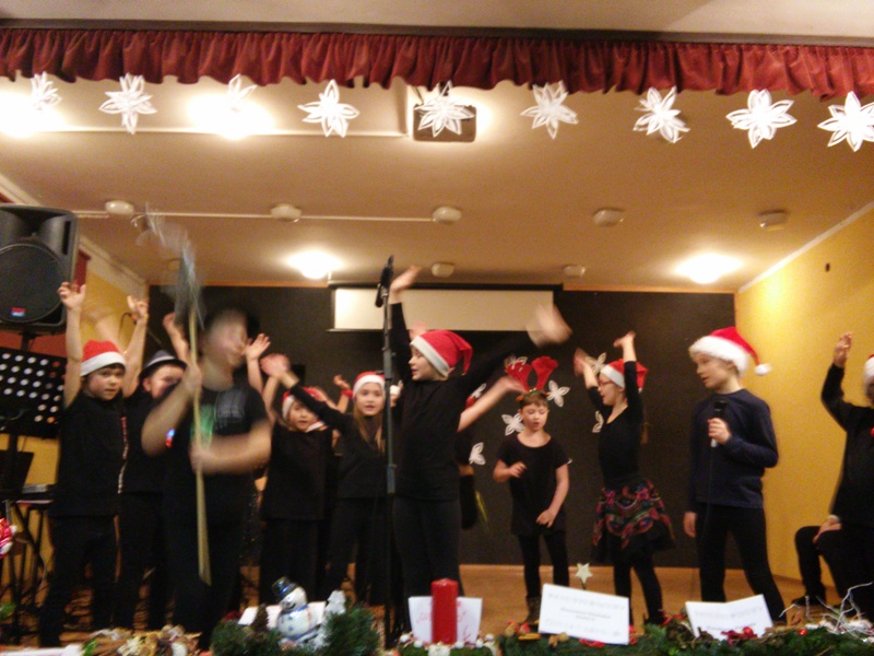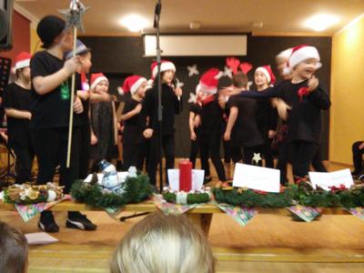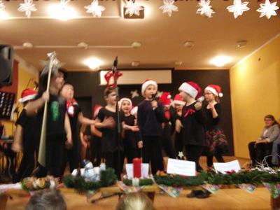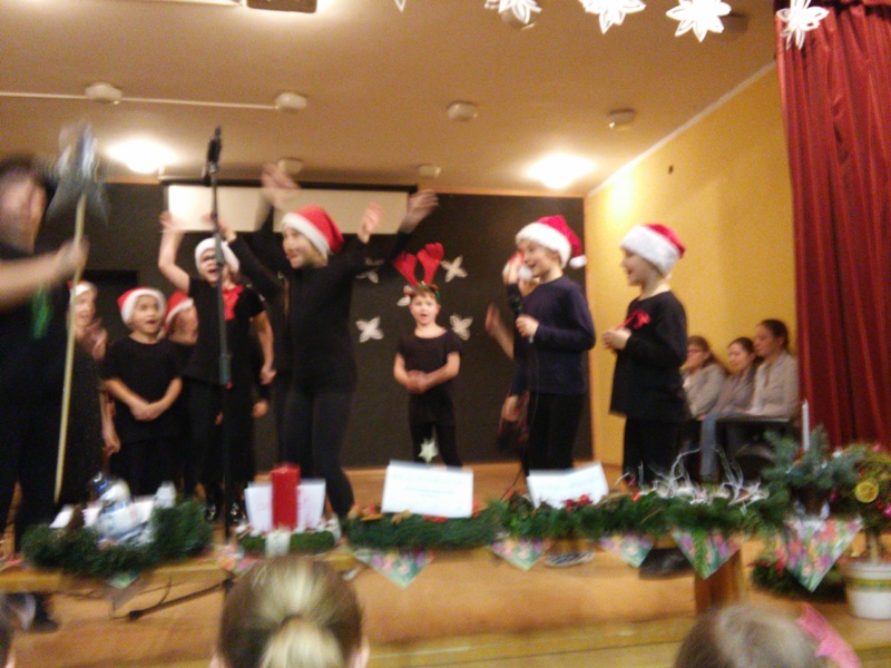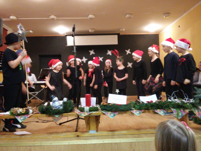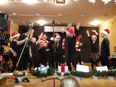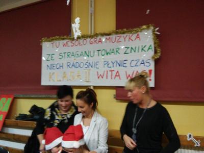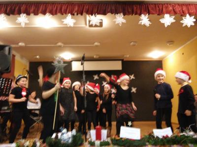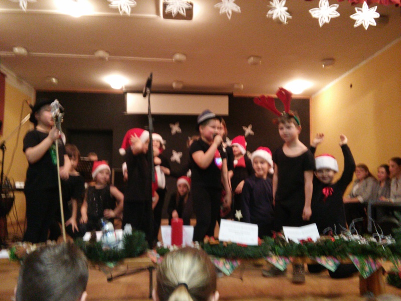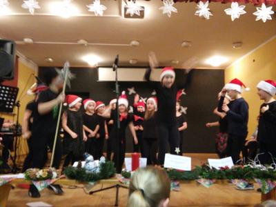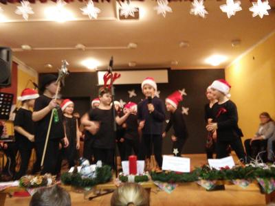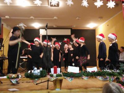 Podczas trwania świątecznego kiermaszu na scenie wystąpili uczniowie z II b, znani jako