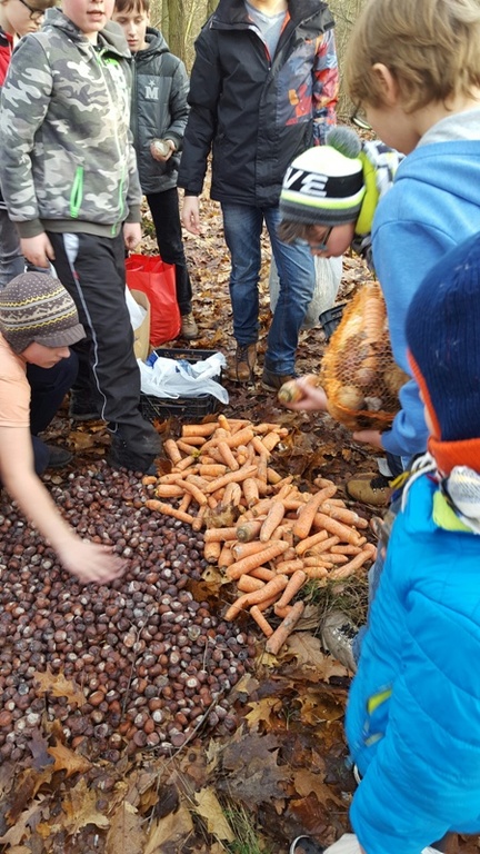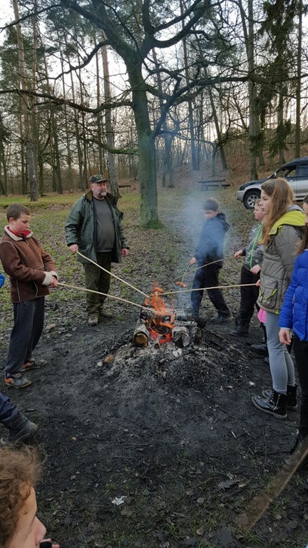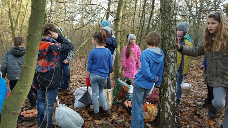 Uczniowie zorganizowali zapasy pożywienia dla zwierząt leśnych na czas zimy. "Leśna stołówka" prezentowała sie okazale. W nagrodę Pan Knast urządził ognisko nad jeziorem Brzostek. Pieczenie i zajadanie kiełbasek, wspólne zabawy, składanie życzeń świątecznych przy pysznym pierniku to chwile radosne i niezapomniane.