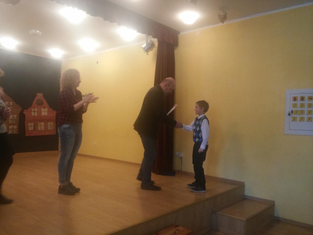 Dnia 5 kwietnia odbył się w naszej szkole Konkurs Recytatorski " Moja Ojczyzna". Udział wzięło 15 uczniów z edukacji wczesnoszkolnej. W składzie jury zasiedli: pani Hanna Sosińska, pan Wojciech Grupiński, pani Joanna Banaszyk. Obradom przewodniczył Dyrektor Szkoły pan Paweł Goźdź. Jury oraz widownię zauroczyła swym występem Amelia Mańka - uczennica klasy pierwszej, recytując wiersz " O małym patriocie" Zygmunta Marka Miszczaka, II miejsce wywalczył Stanisław Lindner, również z klasy pierwszej, wierszem" Kim też ja będę?" Władysława Bełzy , III miejsce zdobyła Barbara Szymiec -z klasy drugiej- interpretując wiersz " Polska" Elżbiety Krystek Jones. Wyróżnienia otrzymali: Zofia Kuczuro - uczennica klasy III recytowała wiersz " Z podróży po Polsce" Haliny Czajki- i Nikola Walkowiak- uczennica klasy II mówiła wiersz " Twój dom" Wandy Chotomskiej. Wszyscy uczestnicy otrzymali dyplomy, zwycięzcy- nagrody. Laureaci reprezentować będą naszą szkołę w Gminnym Konkursie Recytatorskim w Jerzykowie. Gratulujemy uczniom, którzy wzięli udział w szkolnym konkursie i trzymamy kciuki za naszych reprezentantów w Jerzykowie.
