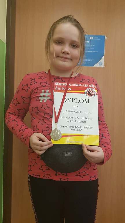 Julka i Stasiu zajmują się karate. Sport sprawia im ogromną frajdę. Julia odnosi spore sukcesy w karate. Stasiu pragnie dorównać siostrze. W tym roku Julka brała udział w Wielkopolskiej Otwartej Lidze Karate Żerków i zdobyła II miejsce w konkurencji KUMITE indywidualne dziewcząt 2009-2008, Stasiu- uczeń klasy pierwszej -brał udział w Wielkopolskiej Lidze Karate Dzieci i Młodzieży Kostrzyn i zdobył III miejsce w konkurencji KUMITE 6-7 lat. Serdecznie gratulujemy i życzymy dalszych osiągnięć.