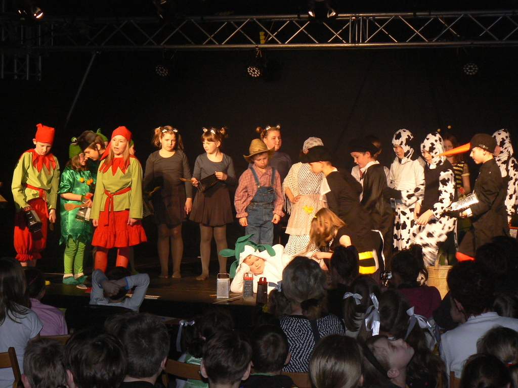 W listopadzie 2011 r. przyszło do naszej szkoły zaproszenie do udziału w Konfrontacjach Teatrów Dziecięcych i Młodzieżowych: „ Dzień Dobry Sztuko” z Ośrodka Kultury w Suchym Lesie. W edukacji wczesnoszkolnej prowadzę działania teatralne i wraz z dziećmi tworzymy przedstawienia i bawimy się w teatr. Dlatego postanowiłam odpowiedzieć na zaproszenie i wziąć udział w : „ Dzień Dobry Sztuko”. Rok wcześniej moje „ Anioły z III klasy” przygotowały przedstawienie: „ Dziadek do orzechów”, które wystawiliśmy dla dzieci, rodziców i dziadków. Mieliśmy gotowe nagranie, które wystarczyło wysłać i czekać na werdykt Rady Artystycznej. Po obejrzeniu 36 spektakli, ze szkół województwa wielkopolskiego, Rada Artystyczna zakwalifikowała „ Anioły z III klasy” do kolejnego etapu Konfrontacji. Kolejny etap konkursu odbył się w marcu. Do Zespołu Szkół przyjechali, z Poznańskiej Fundacji Artystycznej, pan Bogdan Żyłkowski- reżyser i pani Lidia Piss- aktorka. Obejrzeli nasze dzieci w nowym spektaklu: „ Rzepka”. Zachwyciła ich naturalność i ogromna pasja twórcza młodych artystów. Staliśmy się finalistami Konfrontacji Teatrów Dziecięcych i Młodzieżowych Województwa Wielkopolskiego. Rada Artystyczna włączyła dzieci w artystyczny projekt. Aktorzy, muzycy oraz scenografowie przyjeżdżali do szkoły i prowadzili z moimi uczniami profesjonalne warsztaty teatralne.