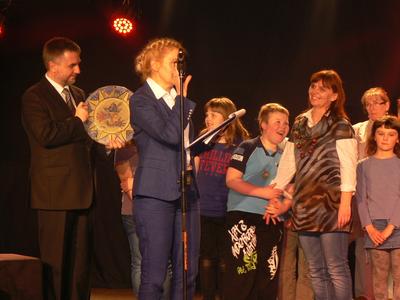 19 kwietnia 2012 r. był bardzo ważnym dniem dla „ Aniołów z III klasy”. Pojechaliśmy do Suchego Lasu na Finał VII Konfrontacji Teatrów Dziecięcych i Młodzieżowych zorganizowanych przez Ośrodek Kultury i Poznańską Fundację Artystyczną. Konfrontacje Teatralne odbywały się pod Patronatem Honorowym Marszałka Województwa Wielkopolskiego Marka Woźniaka oraz Patronatem Medialnym Radia Merkury i Gazety Sucholewskiej. Pan Marszałek Marek Woźniak przywitał wszystkich uczestników finału i życzył wspaniałych wrażeń artystycznych, wspólnej zabawy oraz atmosfery, w której czuć będzie miłość do teatru. Pierwszy raz moje „ Anioły” występowały na profesjonalnej scenie, gdzie oślepiały ich światła reflektorów. Czuli się prawdziwymi aktorami i z wielkim przejęciem odegrali swoje role. Wszystkie zespoły pokazały wspaniałe widowiska teatralne. Nasz zespół pokazał piękną historię rzepki w zaczarowanym świecie pełnym barw i zabawy. Każdy zespół biorący udział w Konfrontacjach otrzymał pamiątkowy dyplom i cenny upominek. My dostaliśmy kolorowe reflektory, które będą nam służyć na naszej szkolnej scenie. Po występach odbyła się długa narada jury. W wielkim napięciu, wszyscy, oczekiwaliśmy na ogłoszenie werdyktu. Na sali zapanowała niewiarygodna cisza, gdy na scenie pojawił się przewodniczący jury. Tylko jeden zespół mógł otrzymać Nagrodę Główną – Wojciecha. Wojciech- to Grand Prix dla zespołu teatralnego biorącego udział w Konfrontacjach. Nazwa nagrody związana jest z postacią Wojciecha Bogusławskiego, człowieka, który cale swoje życie poświęcił teatrowi. To właśnie on nazywany jest Ojcem Polskiego Teatru Narodowego. W tej przejmującej ciszy usłyszeliśmy: Główną Nagrodę-Wojciecha- otrzymują „Anioły z III klasy” za najciekawszą prezentację teatralną, za zaczarowany świat bajki, za śmiałe wizje i odważne realizacje, za poszukiwania i spontaniczne kreacje, za wspólnotę sztuki, za talent i mnóstwo przeżyć, których byliśmy świadkami. Dziękujemy. W tej samej chwili z 26 małych piersi i 4 wielkich ( p. Czajka+ opiekunowie) wyrwało się głośne, radosne huuuuuurrrrrraaaaaaa. Wojciecha- witraż wykonany przez artystę plastyka Andrzeja Żurka przywieźliśmy do szkoły. Dopiero na drugi dzień, gdy zbieraliśmy gratulacje, dotarło do nas, że spośród tylu grup z województwa wielkopolskiego to właśnie my dostaliśmy Wojciecha.