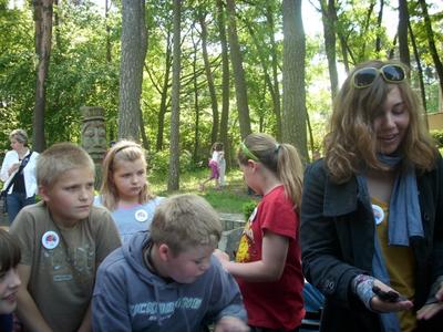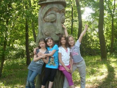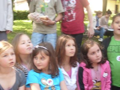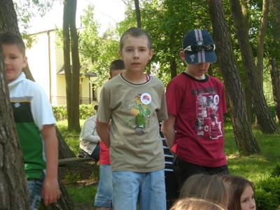 19 maja zostaliśmy zaproszeni przez Poznańską Fundację Artystyczną do Domu Kultury „ Parasol” w Przeźmierowie na Konfrontacje Teatralne. Byliśmy najmłodszą i najliczniejszą grupą. Na początku odbyły się warsztaty plastyczne na świeżym powietrzu. Wymyślaliśmy kostiumy, które przydały nam się w specjalnym spektaklu AB OVO. Pogoda była piękna. Rozkoszując się świeżym powietrzem malowaliśmy, na koszulkach, elementy związane z ptakiem, który wykluwa się z jajka. Najpierw szukaliśmy koszulek w odpowiednim kolorze, potem patrzyliśmy na rozmiar. Koszulki były białe, żółte, czerwone, niebieskie. Przymierzaliśmy koszulki i śmialiśmy się. Wyglądaliśmy w nich zabawnie i bawiliśmy się wspaniale. Później ubraliśmy się w te koszulki i paradowaliśmy w nich aż do naszego występu. Bardzo podobała nam się próba na profesjonalnej scenie w blasku reflektorów. Podziwialiśmy operatorów dźwięku i światła. Następnie ćwiczyliśmy wylęganie się ptaka ze skorupy. Nadmuchano nam olbrzymiego ptaka, który był naszą matką i wprowadzał nas w dorosły świat. W rytm muzyki próbowaliśmy poruszać się jak profesjonalni aktorzy, nikt nie rozmawiał, naśladowaliśmy ruchy aktorów, a potem sami improwizowaliśmy wylęganie się ptaszka. Kiedy skończyliśmy naszą etiudę obserwowaliśmy innych. Były niesamowite efekty: woda szumiała i falowała, koń podskakiwał na jednej nodze, a potem strzelał uszami. Specjalnie dla nas nadmuchano wielkiego człowieka, którego nazwaliśmy „ Bobem”. Od tej chwili wszyscy uczestnicy tak się do niego zwracali. W Konfrontacjach brały udział różne zespoły. Byli to przeważnie licealiści i gimnazjaliści. Pokazywali nam sztuki na bardzo wysokim poziomie. Nasz występ zachwycił publiczność, która żywo reagowała na każde słowo, gest. Otrzymaliśmy owacje na stojąco. Aktorzy gratulowali nam i nosili na rękach. Po przedstawieniu przestaliśmy być „ Aniołami”, przemianowano nas na „ Rzepy”. Nasz Maciej wielokrotnie był proszony na scenę. „ Rzepy zaprzyjaźniły się ze wszystkimi uczestnikami Konfrontacji. Wspólnie się bawili. Reżyser, pan Bogdan Żyłkowski, urządzał w przerwach tańce. Cały dzień obcowaliśmy z teatrem. Było to niesamowite przeżycie. Ten dzień, na pewno, długo pozostanie w naszej pamięci.