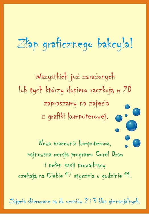 Warsztaty grafiki komputerowej Zdjęcia Zobacz również „Bezpiecznie na stoku” Skimboarding - prześlizgaj ferie na desce Warsztaty decoupage Warsztaty grafiki komputerowej Drodzy Gimnazjaliści ze szkół Gminy Pobiedziska. Pierwsze Spotkanie Integracyjne Nauczycieli Gminy... 07 stycznia 2013 Aktualności Wydrukuj Udostępnij Wyświetlono: 790