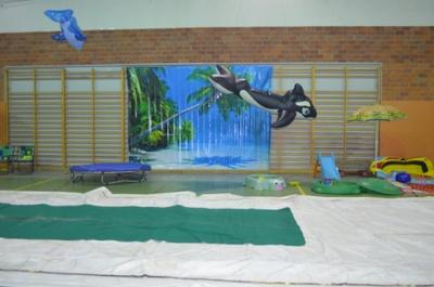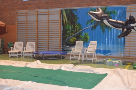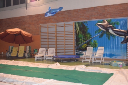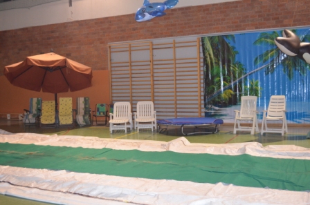 Na dwa dni nasza szkolna sala gimnastyczna zamienia się w tropikalną wyspę, na której królować będą deski skimboardowe i dobry nastrój. W piątkowy wieczór panuje tu jeszcze spokój. Zabawę zaczynamy w poniedziałek o 11.30. Musisz tu być. Zapraszamy!