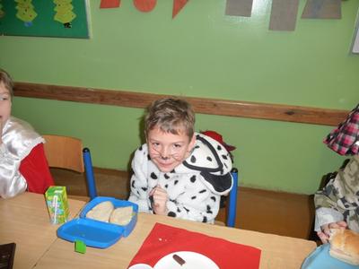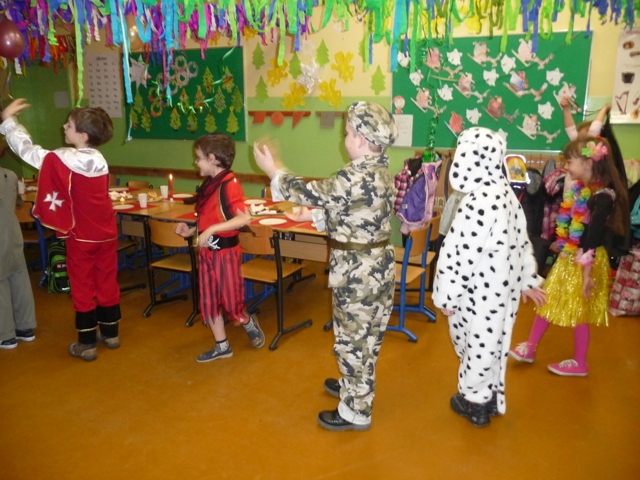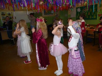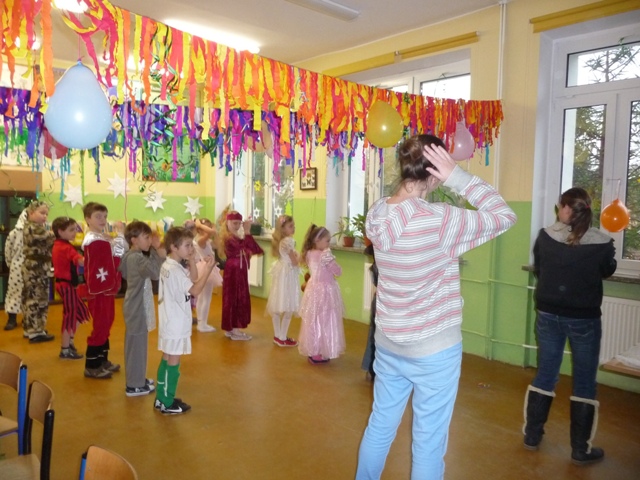 -Bal odbył się w czwartek. Pani zorganizowała nam różne konkursy oraz tańce. Później wybieraliśmy Króla i Królową balu. Mieliśmy pięknie udekorowaną salę. Wszyscy byli kolorowo przebrani. Zosia Minc