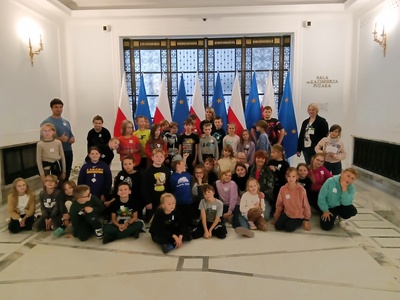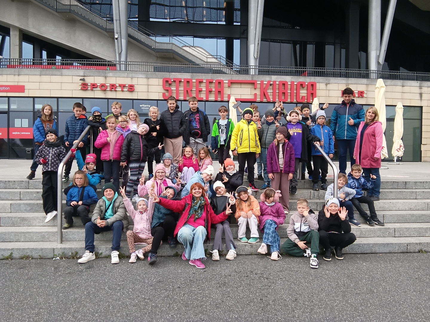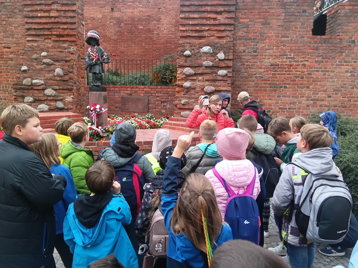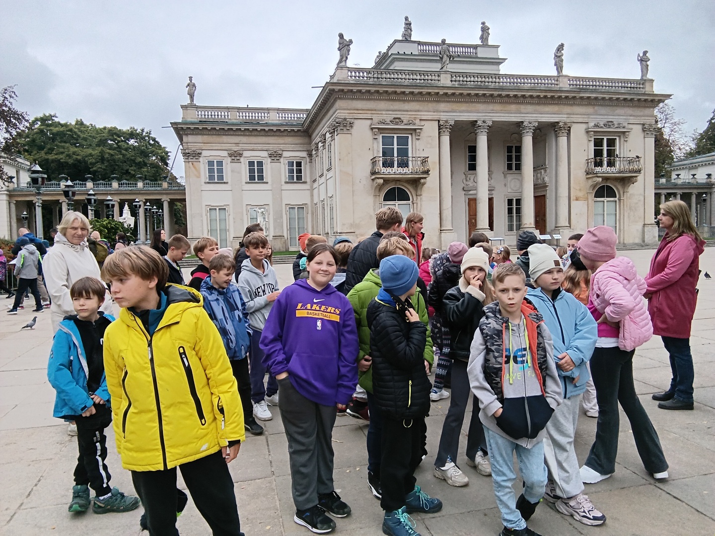 wyjazdu do Warszawy w ramach projektu " lekcje o finansach". Im bliżej wycieczki tym byli coraz bardziej podekscytowani. W czwartek Jasiu podszedł do mnie na przerwie i powiedział: " Dobrze, że już jutro jedziemy. Będę pierwszy raz w stolicy". Ucieszyłam się, że to ja Jasiowi pokażę Warszawę, mały fragment. I oto wsiadamy do autobusu. Ostatnie sprawdzanie obecności, zajmowanie miejsca i...witaj przygodo. Jeszcze dzień się nie zaczął, ciemno na dworze, a my w podróży. Dojeżdżamy do stolicy i udajemy się na Stadion Narodowy. Rozsiadamy się wygodnie na stadionie, słuchamy przewodnika i nagle Olek zainicjował " W górę serca, niech zwycięża Lech, niech zwycięża Lech Kolejorz", a cała grupa mu odpowiedziala " niech zwycięża Lech". Zamarzyło się chłopakom i dziewczynom zwycięstwo Lecha na Stadionie Narodowym. Później robi się poważnie, bo udajemy się do Sejmu, przechodzimy przez bramkę i w zupełnej ciszy poruszamy się po korytarzach. Udajemy sie na obrady i zasiadamy w ławach poselskich. Dowiadujemy się wielu rzeczy dotyczacych podejmowania ustaw, głosowania, zabierania głosu. Oglądamy srebny przysick przyznany Kancelariii Sejmu przez YouTube, za przekroczenie stu tysięcy subskrybentów kanału w serwisie. Wzrosło olbrzymie zainteresowanie obradami Sejmu. Po wyjściu z Sejmu jedziemy zobaczyć Belweder. Tam wita nas nie kto inny tylko sam Marszałek Piłsudski- pomnik, a obok prawdziwy, przebrany w strój Naczelnika mężczyzna. Pewnie toczy się jakaś gra terenowa. Podziwiamy auto Piłsudskiego. Bardzo drogi samochód, sprowadzony ze Stanów tylko dla niego. Nigdy nim nie pojeździł. Wykorzystał go Wódz Naczelny Śmigły- Rydz w 1939r. pędząc do Rumunii. Dalej spacer po Łazienkach Królewskich, spotkamy wiewiorki, zbieramy kasztany. Dochodzimy do Pomnika Małego Powstańca i ruszamy na zmianę warty przy Grobie Niezanego Żołnierza. I ostatni punkt programu- fontanna w Ogrodzie Saskim. Chwila odpoczynku i do domu. Mnóstwo wrażeń, radości i wspólnych przeżyć. Ale opowieść byłaby niekompletna, gdybym nie wspomniała o stand- upie Janka z IV klasy. Mistrzostwo świata, śmialiśmy się do łez. Chyba każdy zapamiętał z tej wycieczki występ Janka i jego " very, very good z akcentem". To tak na koniec z uśmiechem.