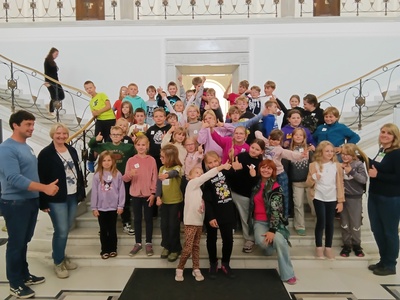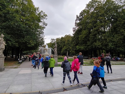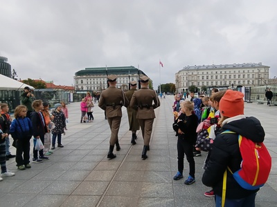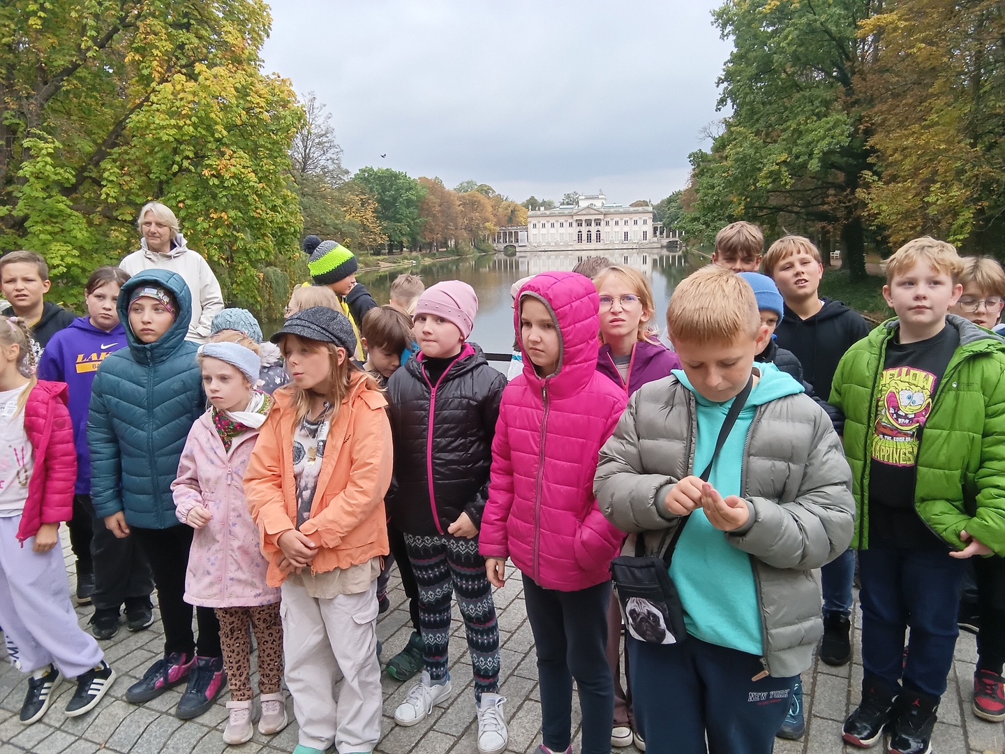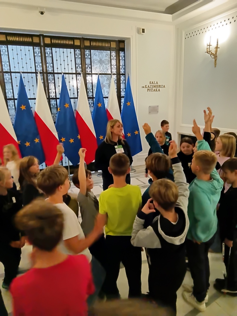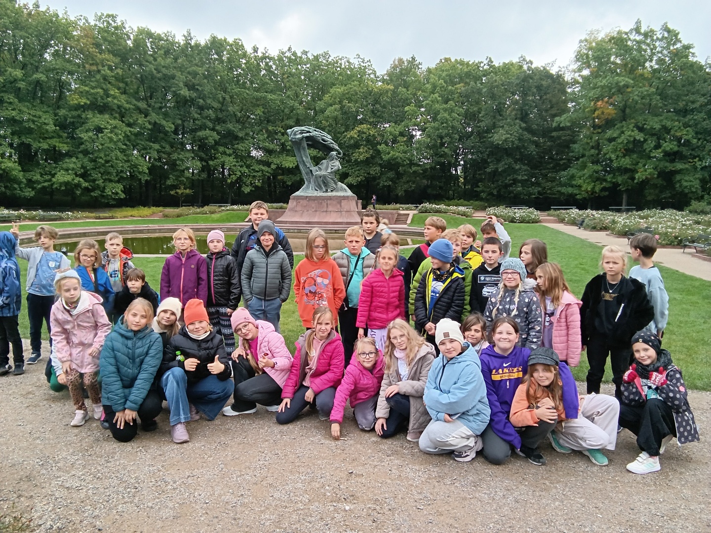 wyjazdu do Warszawy w ramach projektu " lekcje o finansach". Im bliżej wycieczki tym byli coraz bardziej podekscytowani. W czwartek Jasiu podszedł do mnie na przerwie i powiedział: " Dobrze, że już jutro jedziemy. Będę pierwszy raz w stolicy". Ucieszyłam się, że to ja Jasiowi pokażę Warszawę, mały fragment. I oto wsiadamy do autobusu. Ostatnie sprawdzanie obecności, zajmowanie miejsca i...witaj przygodo. Jeszcze dzień się nie zaczął, ciemno na dworze, a my w podróży. Dojeżdżamy do stolicy i udajemy się na Stadion Narodowy. Rozsiadamy się wygodnie na stadionie, słuchamy przewodnika i nagle Olek zainicjował " W górę serca, niech zwycięża Lech, niech zwycięża Lech Kolejorz", a cała grupa mu odpowiedziala " niech zwycięża Lech". Zamarzyło się chłopakom i dziewczynom zwycięstwo Lecha na Stadionie Narodowym. Później robi się poważnie, bo udajemy się do Sejmu, przechodzimy przez bramkę i w zupełnej ciszy poruszamy się po korytarzach. Udajemy sie na obrady i zasiadamy w ławach poselskich. Dowiadujemy się wielu rzeczy dotyczacych podejmowania ustaw, głosowania, zabierania głosu. Oglądamy srebny przysick przyznany Kancelariii Sejmu przez YouTube, za przekroczenie stu tysięcy subskrybentów kanału w serwisie. Wzrosło olbrzymie zainteresowanie obradami Sejmu. Po wyjściu z Sejmu jedziemy zobaczyć Belweder. Tam wita nas nie kto inny tylko sam Marszałek Piłsudski- pomnik, a obok prawdziwy, przebrany w strój Naczelnika mężczyzna. Pewnie toczy się jakaś gra terenowa. Podziwiamy auto Piłsudskiego. Bardzo drogi samochód, sprowadzony ze Stanów tylko dla niego. Nigdy nim nie pojeździł. Wykorzystał go Wódz Naczelny Śmigły- Rydz w 1939r. pędząc do Rumunii. Dalej spacer po Łazienkach Królewskich, spotkamy wiewiorki, zbieramy kasztany. Dochodzimy do Pomnika Małego Powstańca i ruszamy na zmianę warty przy Grobie Niezanego Żołnierza. I ostatni punkt programu- fontanna w Ogrodzie Saskim. Chwila odpoczynku i do domu. Mnóstwo wrażeń, radości i wspólnych przeżyć. Ale opowieść byłaby niekompletna, gdybym nie wspomniała o stand- upie Janka z IV klasy. Mistrzostwo świata, śmialiśmy się do łez. Chyba każdy zapamiętał z tej wycieczki występ Janka i jego " very, very good z akcentem". To tak na koniec z uśmiechem.