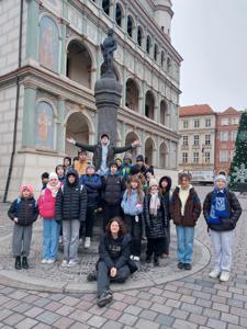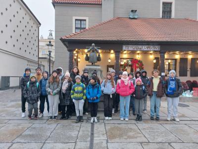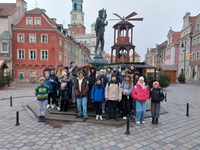 10 grudnia uczniowie klasy VI wraz z wychowawczynią Anią Mikos udali się na wycieczkę do Poznania. Naszą wizytę rozpoczęliśmy o krótkiego spaceru uliczkami poznańskiej starówki, która w przedświątecznej odsłonie wprawiła nas w doskonały nastrój. Jako, że czas przedświąteczny to czas magiczny, największą atrakcją było odwiedzenie poznańskiego Muzeum Iluzji, Nauki i Sztuki. To miejsce, gdzie iluzja spotyka się z nauką i sztuką, dając możliwość doświadczenia nieznanego dotąd świata. Dzięki interaktywnym atrakcjom – od klasycznych łamigłówek, przez iluzje optyczne, aż po wielkoformatowe eksponaty uczniowie zdobywali wiedzę przez zabawę i eksperymentowanie. Wszystko to pod okiem edukatora Barta, który chętnie odpowiadał na nasze pytania i ciekawie opowiadał między innymi o wynalazkach Tesli, wahadle matematycznym, polu magnetycznym, prądzie. Na koniec wizyty uczniowie wzięli udział w zabawnym pokazie sztuczek magicznych, w którym nie zabrakło znikających i pojawiających się kart, sznurków, które się same skracały i wydłużały no i oczywiście króliczka z kapelusza! Po zakończeniu pokazu udaliśmy się na krótkie spotkanie z Poznańskimi Koziołkami, a następnie poszliśmy do kręgielni. Tam podzieleni na sześcioosobowe zespoły rywalizowaliśmy o zbicie jak największej ilości kręgli. To była bardzo emocjonująca i wesoła zabawa! Wszyscy wrócili do Pobiedzisk rozpromienieni i uśmiechnięci!