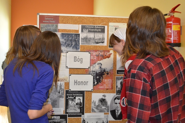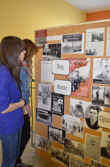 W lutym -nauczycielka historii- pani Barbara Urban wraz z uczniami liceum przygotowała Tablicę Upamiętniającą Żołnierzy Wyklętych. 28 lutego i 1 marca, uczniowie zapoznali się z filmami ukazującymi rozprawę komunistów i NKWD z Podziemnym Państwem Polskim, i jego żołnierzami. ("Żołnierze Wyklęci- Losy Niepokornych"- Fundacja AK, "Żołnierze Wyklęci" -reżyseria Joanna Maro). 8 marca, pani Barbara Urban, w prezentacjach zapoznała uczniów z sylwetkami Żołnierzy Wyklętych: