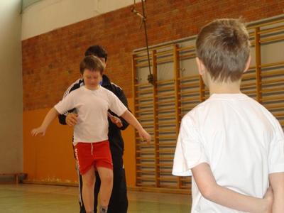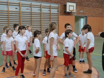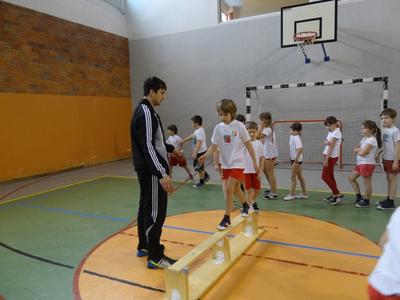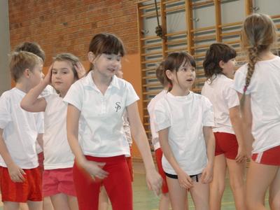 By takiego ducha w sobie mieć chłopaki i dziewczyny z klasy drugiej bardzo chętnie biorą udział w zajęciach ruchowych. Lekcje kultury fizycznej należą do ich ulubionych. Szczególnie upodobali sobie wyścigi rzędów i grę zespołową w „Dwa ognie”. Bardzo ciekawe zajęcia zorganizował dla uczniów student AWF-u Krystian Michalak. Uczniowie doskonale bawili się podczas oryginalnych zabaw ruchowych i różnorodnych konkurencji sportowych.