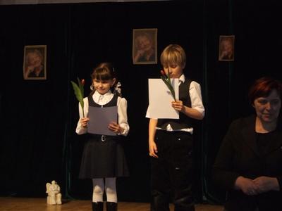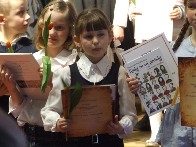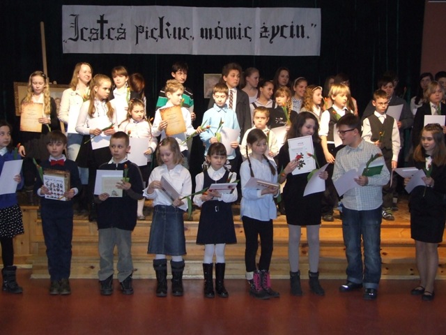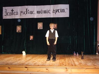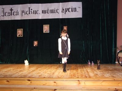 Jak widać konkurencja była duża. Cieszy nas fakt, że nasi uczniowie zostali dostrzeżeni. W kategorii klas 1- 3 SP I miejsce bezapelacyjnie zdobyła Agnieszka Krasuska z klasy 2, która zapowiada się na duży talent recytatorski. W klasach 4- 6 SP II miejsce zajęła Tosia Maniszewska z kl. 4. Wyróżniono też Zuzę Meisner z kl. 4. Wśród gimnazjalistów także mamy sukcesy. II pozycję zajęła Karolina Adamczak z kl. 3 Gim.