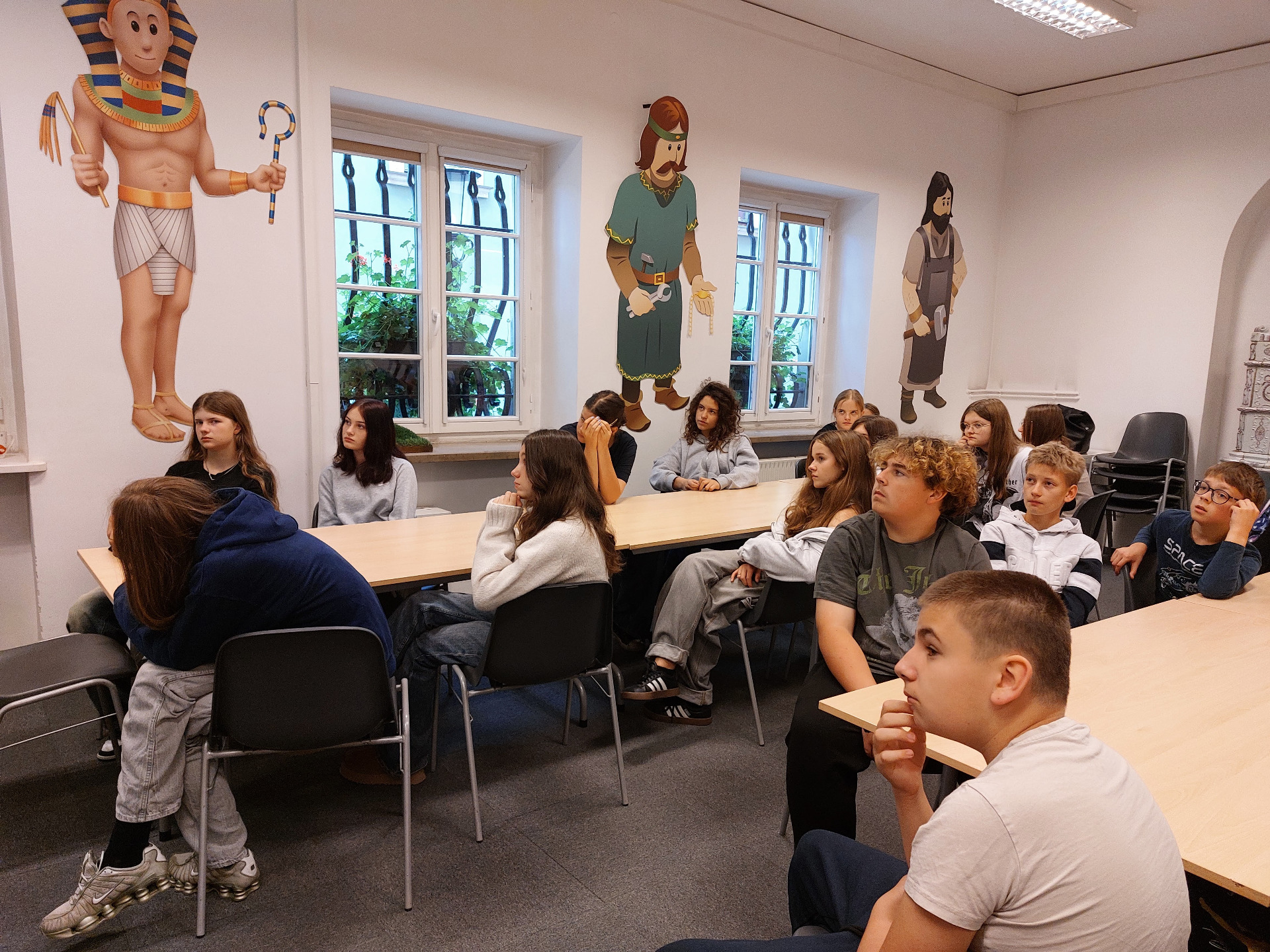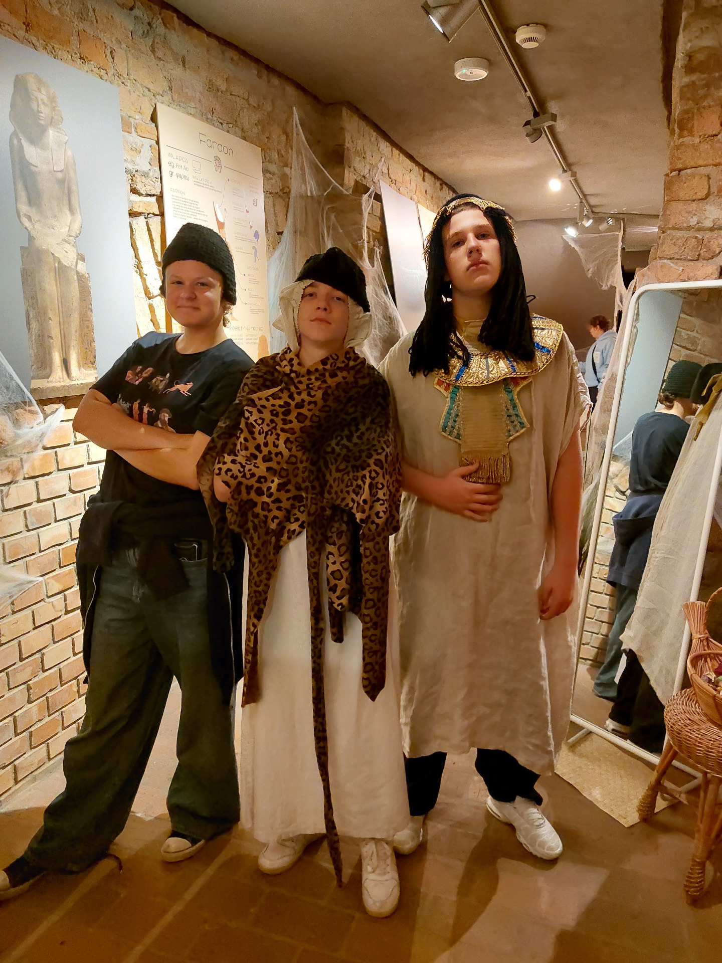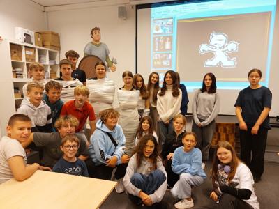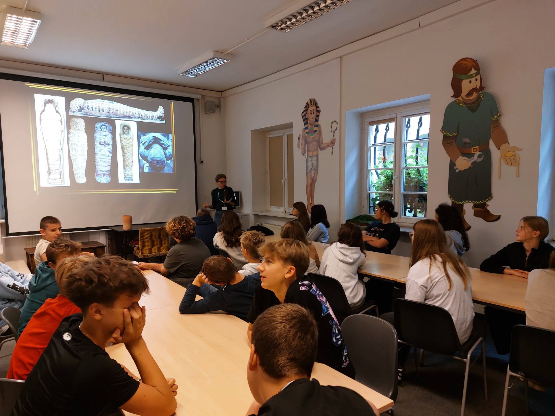 30 września klasa VII wybrała się do Muzeum Archeologicznego na lekcję muzealną pt. „Mózg przez nos”. Zajęcia były poświęcone starożytnemu Egiptowi i procesowi mumifikacji. Dowiedzieliśmy się, jak Egipcjanie przygotowywali ciało zmarłego do życia pozagrobowego, dlaczego usuwali mózg przez nos i jakie przedmioty wkładali do grobowców. Mogliśmy też zobaczyć ciekawe eksponaty – m.in. sarkofagi, amulety oraz naczynia używane podczas obrzędów. Na zakończenie zajęć przerobiliśmy na mumie cztery osoby z klasy. Lekcja była bardzo ciekawa i pozwoliła nam poznać zwyczaje oraz wierzenia starożytnych Egipcjan.