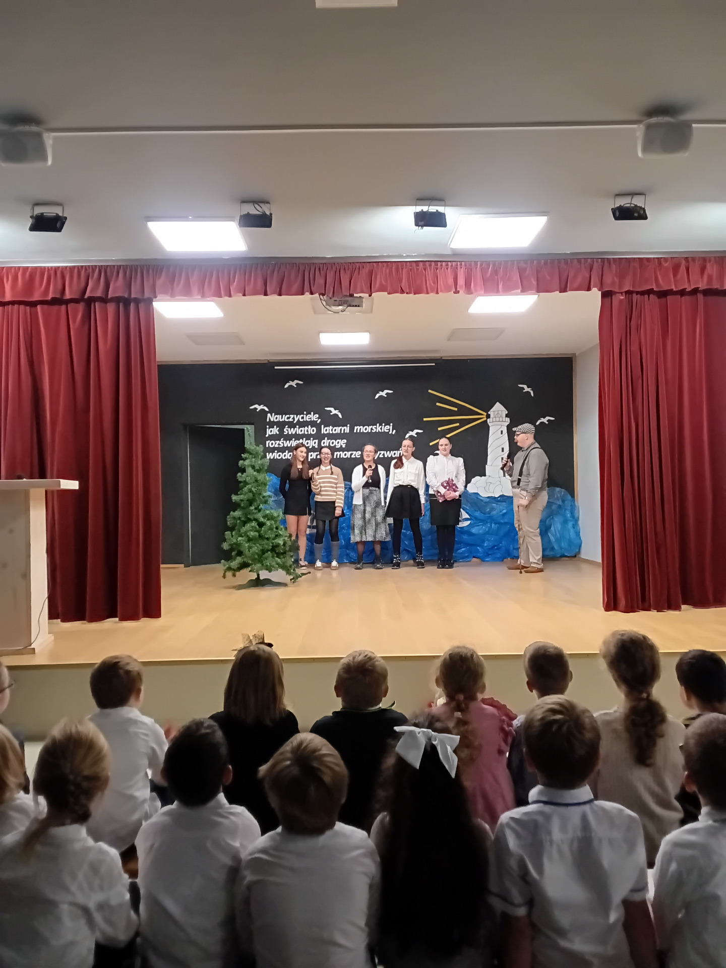 Nie zabrakło śmiechu, ciekawych scenek i refleksji o tym, jak ważną rolę w naszym życiu odgrywają nauczyciele — niczym światło morskiej latarni wskazują nam właściwą drogę.