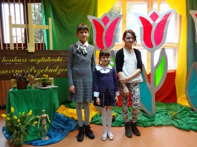 Trzy wielkie sukcesy Agnieszki Krasuskiej, to plony jakie zebrała w ciągu niespełna tygodnia. Znakomitą formę i perfekcyjne przygotowanie potwierdziły dwa zwycięstwa w gminnych konkursach recytatorskich oraz wywalczenie II miejsca w konkursie powiatowym. W wielkim Finale XIV Powiatowego Konkursu Recytatorskiego „WIOSENNE PRZEBUDZENIE” w Murowanej Goślinie spotkali się uczniowie-laureaci konkursów gminnych. O wysokim poziomie tego wydarzenia świadczył fakt, iż jury miało wielki problem z przyznaniem medalowych miejsc. Dzieci zachwyciły ciekawą interpretacją wierszy oraz swobodą i ekspresją recytacji. Dodatkowym atutem Agnieszki natomiast był jej niewątpliwy urok osobisty i wdzięk, który w całokształcie przyczynił się do zdobycia wysokiego drugiego miejsca. Poziom konkursu był bardzo wysoki, konkurencja duża, tym bardziej cieszymy się z osiągnięć naszej artystki. Gratulujemy Agnieszce i życzymy dalszych sukcesów.