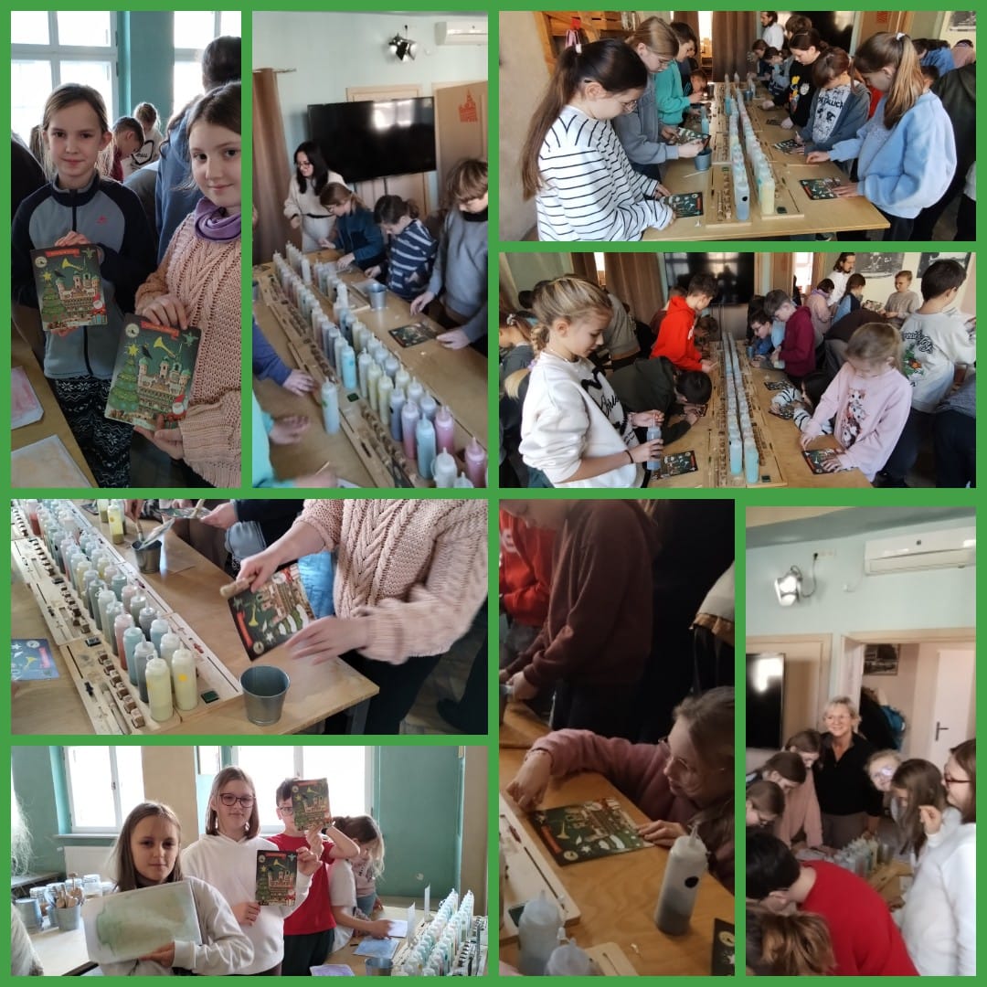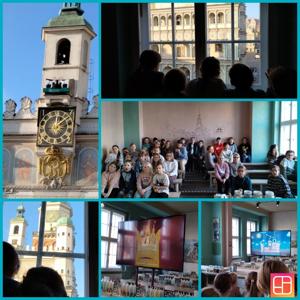 Wizyta w muzeum rozpoczęła się od warsztatów edukacyjno-artystycznych „Widokówka z Poznania” w świątecznej wersji. Podczas zajęć uczniowie tworzyli widokówki z ratuszem i koziołkami, uzupełniając je kolorowymi piaskami oraz stempelkami ze słówkami z poznańskiej gwary. Poznali historię koziołków, Starego Rynku i hejnału dzięki specjalnemu filmowi animowanemu, a także przyglądali się detalom architektonicznym ratusza.