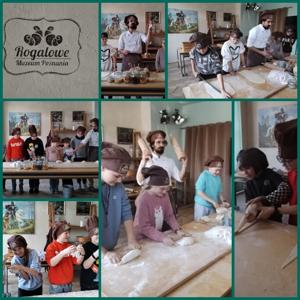 Kolejnym punktem programu były pokazy rogalowe prowadzone przez Rogalowego Mistrza i jego pomocnika. Uczniowie poznali legendę o rogalach, recepturę i składniki rogali świętomarcińskich, a następnie samodzielnie przygotowali swoje wypieki przy użyciu tradycyjnych narzędzi. Pokaz wzbogacony był elementami poznańskiej gwary oraz multimedialną prezentacją o historii miasta. Na zakończenie dzieci otrzymały certyfikaty czeladnicze i mogły skosztować certyfikowanych rogali. Uwieńczeniem wycieczki była możliwość podziwiania słynnych koziołków poznańskich z okien muzeum.
