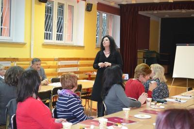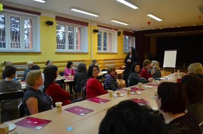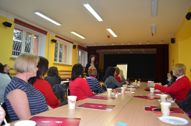 Prowadząca zaproponowała na początek krótkie zajęcie warsztatowe w grupach nieznających się nauczycieli, co pozwoliło lepiej nam się poznać. Następnie miał miejsce wykład o wzorcach osobowości. Niezwykle sugestywny, ekspresyjny sposób przekazu, poparty licznymi przykładami z życia, sprawił, że udział w tej konferencji był dużą przyjemnością, a jednocześnie inspiracją do pogłębiania wiedzy na temat różnorodnych wzorców osobowości. Myślę, że wielu nauczycieli uświadomiło sobie, na jak wiele sposobów, poprzez różne zmysły, może być przyswajana przez uczniów wiedza, a to co my interpretujemy jako nadmierną ruchliwość i przeszkadzanie uczniów, jest tylko inną formą odbierania rzeczywistości. Nie zawsze my- nauczyciele umiemy tę nadmierną ekspresję dzieci przyjmować z wyrozumiałością i cierpliwością.