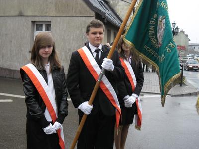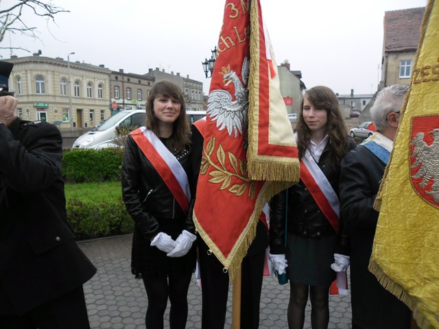 Uroczystości gminne miały miejsce 3 maja w Pobiedziskach. Uczniowie naszej szkoły stawili się tam ze sztandarami: szkolnym i podarowanym nam- kombatanckim. Po uroczystej Mszy Świętej była okazja do wysłuchania koncertu w wykonaniu chóru Melodia, pobiedziskiej orkiestry detej oraz zespołu wiwaty. Piękne dziewczęta, przystojni chłopcy, a wśród nich NASI UCZNIOWIE I ABSOLWENCI. Patrząc na ten występ, serce rosło i napełniało się dumą, że uczucia patriotyczne nie są im obce.