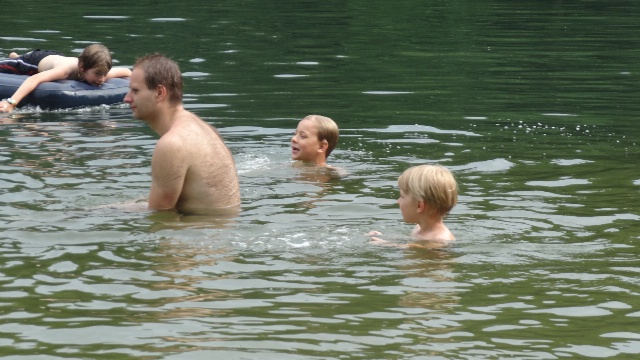 Dzień 23 czerwca to data, którą wszyscy pamiętamy. Dla dzieci i rodziców z II A tym bardziej był to wyjątkowy dzień, gdyż wspólnie z wychowawcą zaplanowali rajd nad jezioro Brzostek. Ciężko było się zebrać , gdyż od samego rana pogoda spłatała figla. Padający deszcz przestraszył niektórych, natomiast „twardziele” stawili się na umówionym miejscu o godzinie 9.00. Podróż malowniczą drogą leśną minęła w okamgnieniu i ani się wszyscy spostrzegli cel został osiągnięty. Ani się też wszyscy spostrzegli, a już Mikołaj siedział w wodzie w swoich białych gatkach. Za nim powędrowali inni. Pod czujną opieką kąpiących się tatusiów wodnym harcom nie było końca. Mamy w tym czasie korzystały z chwili spokoju i konwersowały na różne tematy. Przyszedł też czas na małe co nieco. Pani Emilia upiekła wyśmienity placek, który również zniknął w okamgnieniu. Jak na prawdziwy, niedzielny piknik przystało nie obyło się też bez ogniska. Znalazły się kiełbaski, które po długiej kąpieli smakowały wyśmienicie. Mamy nadzieją, że kolejny rajd rowerowy zyska większą popularność i poruszy tych, których tym razem z nami nie było.