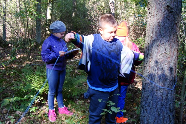 Uczniowie klasy IIIA SP po raz kolejny wcielili się w rolę szalonych naukowców. Tym razem obiektem ich zainteresowań stał się las. Podzieleni na sześć zespołów zgodnie zabrali się do pracy. Oznaczyli teren badawczy, rozdzielili zadania, a następnie wykonywali je według instrukcji. Drużyny PSCD- Poszukiwacze Tajemnic Lasu (Piotrek, Staś S, Cyprian, Damian) oraz Obrońcy Lasu (Jakub D, Martyna K., Mati, Tymek) długo nie mogły zdecydować się na wybór odpowiedniego miejsca do prowadzenia obserwacji. Trudności z jego zaznaczeniem miał również zespół Leśna Brygada ( Ada, Bartek, Sebastian S., Seba G), któremu sznurek plątał się między drzewami. Sprawnym działaniem wykazały się załogi Dzieci Lasu ( Staś K., Hubert, miki, Filip), Oko na Świat (Kacper, Jakub Ż., Julka M., Martyna K.) oraz Leśnicy nr 1 (Wiki, Aga, Oskar, Kuba S.) i jako pierwsze rozpoczęły swoje obserwacje. W wyznaczonym czasie zmierzono obwody drzew, rozpoznano je po liściach, korze i owocach, zaobserwowano zwierzęta i dostrzeżono ciekawostki. Po powrocie do sali lekcyjnej przedstawiono wyniki badań a na ich podstawie sformułowano wnioski. Lekcja prowadzona w ten sposób bardzo się wszystkim spodobała. Zaktywizowała nawet osoby do tej pory mało zainteresowane, uaktywniła logiczne myślenie i chęć zdobywania wiedzy.