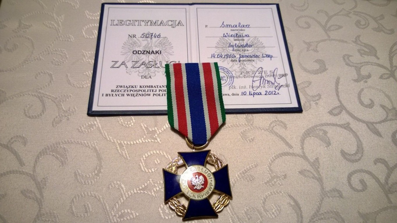 Odznaką za zasługi dla Związku Kombatantów Rzeczypospolitej Polskiej oraz Byłych Więzniów Politycznych.