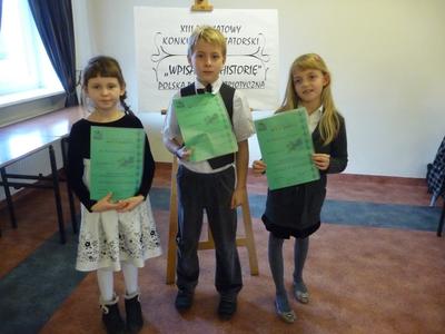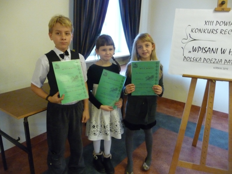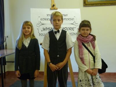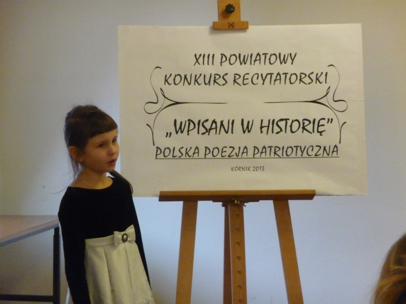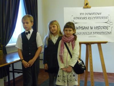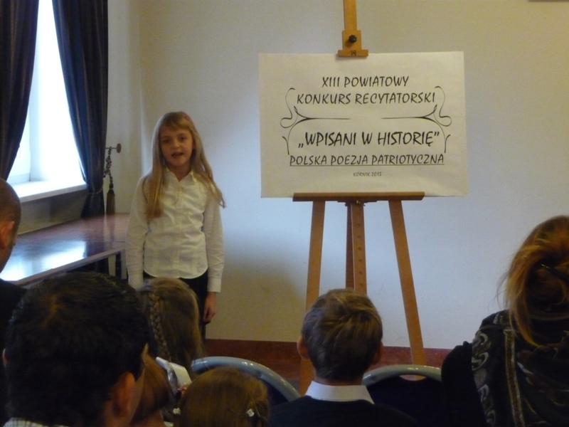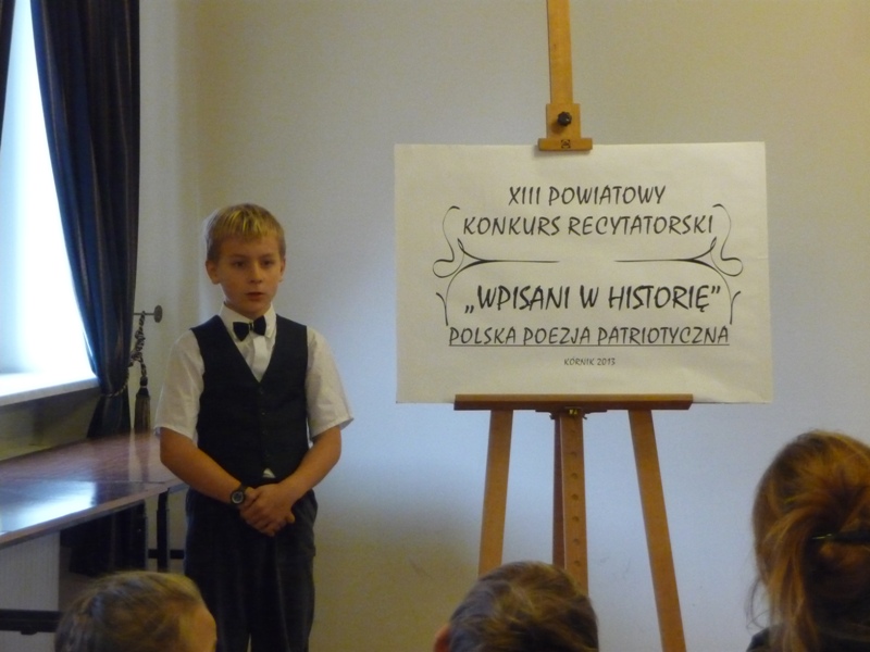 „ Wpisani w Historię”. W tym roku tematem przewodnim konkursu była Polska Poezja Patriotyczna”. Konkurs odbył się pod patronatem Urzędu Miejskiego i Komendy Hufca w Kórniku. Naszą szkołę, w kategorii klas I-III, reprezentowali: