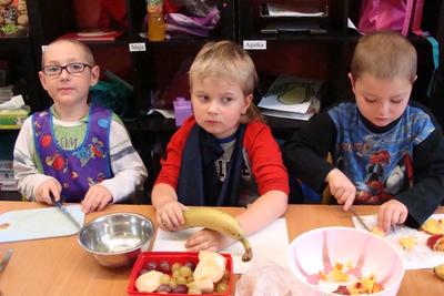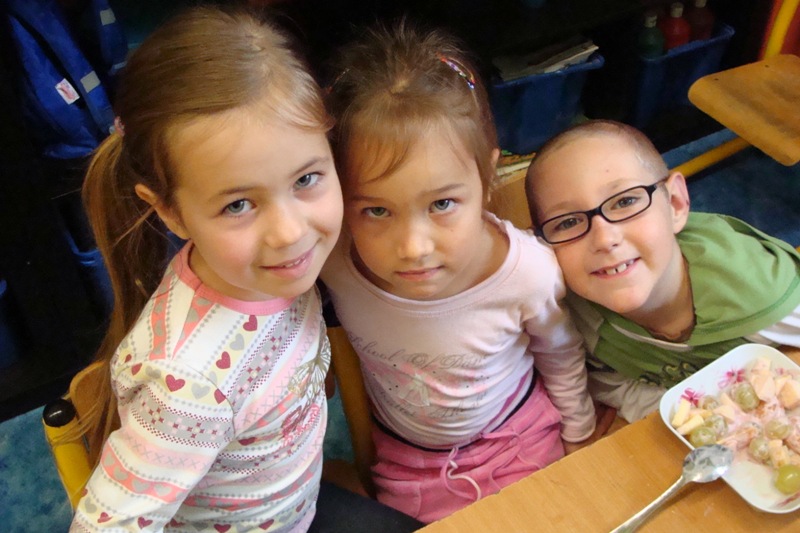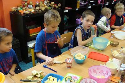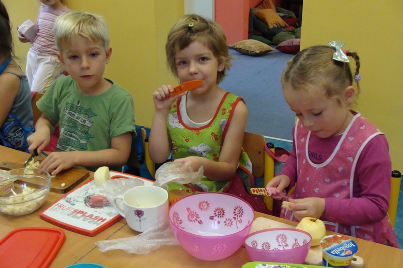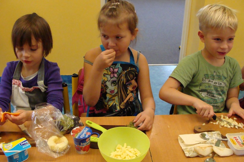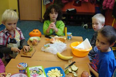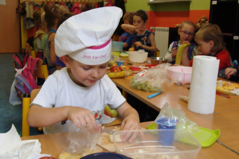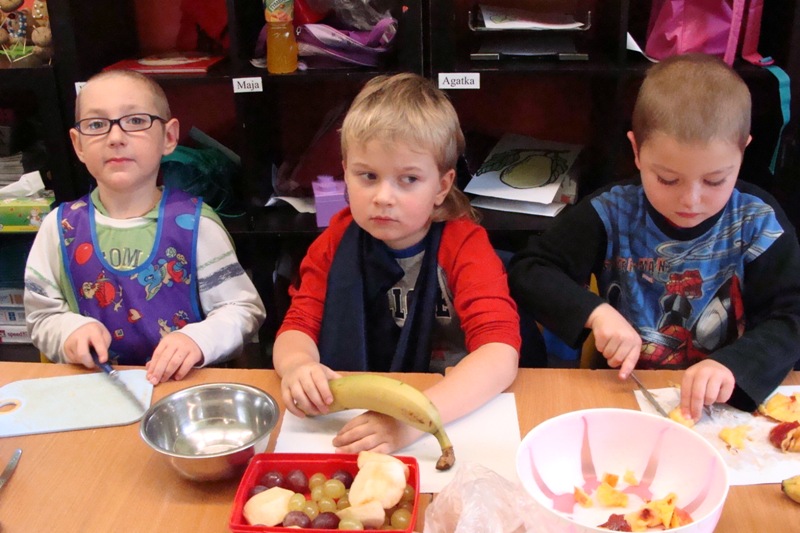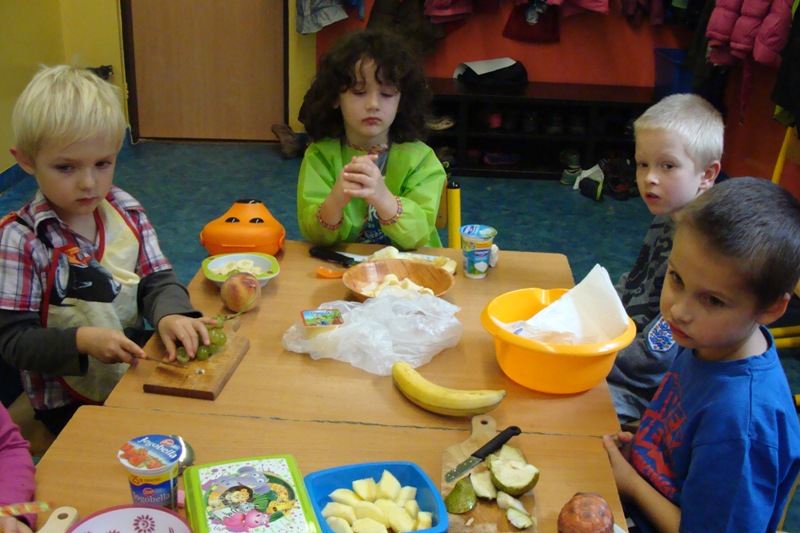 Jesień, to dla dzieci z zerówki kolejna radosna pora roku. Korzystając z pogodnych dni, wesoło bawimy się na placu zabaw i spacerujemy po okolicy. Pamiętamy również o zdrowym odżywianiu, aby wzmocnić organizm. Z zawzięciem przygotowaliśmy sałatkę owocową, a później zjedliśmy ją z ogromnym apetytem. Mniam, mniam … Nie ma to jak przysmaki własnej produkcji : )