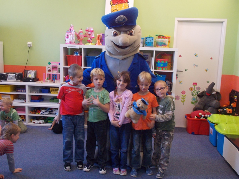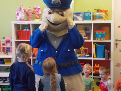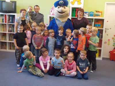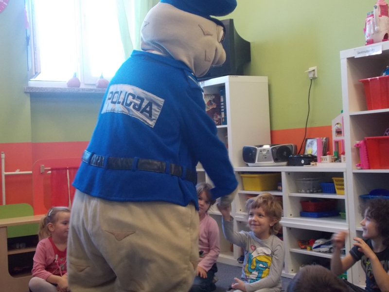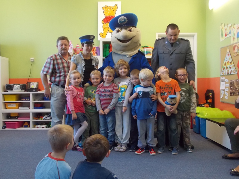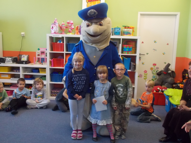 22 października dzieci z oddziału przedszkolnego gościły sierżanta Pyrka oraz starszego aspiranta – pana Pawła Otto – jednego z tatusiów. Funkcjonariusze zawitali do szkolnej zerówki, aby wspólnie z dziećmi podsumować cykl zajęć z zakresu bezpieczeństwa. Dzieci udowodniły, że świetnie orientują się w numerach alarmowych, wiedzą, jak powinno się przechodzić przez jezdnię i jakie miejsca wybierać do zabawy. Sesja zdjęciowa z sierżantem Pyrkiem i uścisk jego dłoni, pozostaną dla dzieci niesamowitymi wspomnieniami.