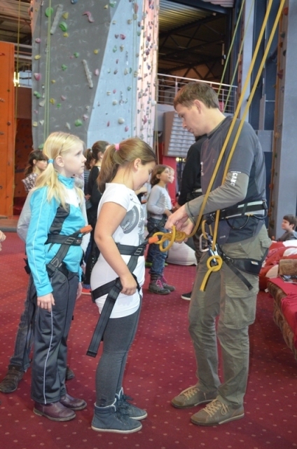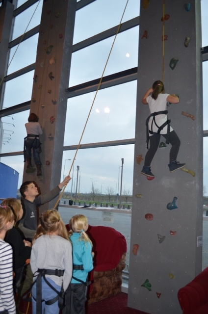 Na to czwartkowe popołudnie uczniowie z klas 4-6 czekali z wielką niecierpliwością. Grupa 52 uczniów po lekcjach 21 listopada pojechała do poznańskiego centrum rozrywki Cinema-City skorzystać z tamtejszych atrakcji. Na miejscu 15 osób przez dwie godziny wspinało się na ściankach wspinaczkowych. Panowie asekurujący uczestników byli pod wielkim wrażeniem wytrwałości i zaciętości naszych dziewcząt, które podczas dwugodzinnej sesji parokrotnie zaliczyły wszystkie dostępne ścianki. W tym samym czasie kolejne grupy dzieci przeżywały emocje podczas sesji laserowego paintballa. 6-osobowe zespoły strzelając do siebie wirtualnym paintballem rywalizowały na punkty w ciemnym labiryncie korytarzy. Po każdej sesji rozentuzjazmowane dzieci nie chciały się żegnać z zabawą. Większego wysiłku wymagały zmagania zawodników „sumo” ubranych w specjalne skafandry. Niektórzy mieli spore kłopoty ze wstaniem z maty… Inni korzystali z dostępnych na monety atrakcji i zabaw zręcznościowych. Dwie godziny szybko minęły i nadszedł czas na seans filmowy. Młodsi bawili się na filmie pt.”Rysiek Lwie Serce”, starsi przeżywali emocje na filmie „Mój biegun”. Do domu wróciliśmy zmęczeni ale baaardzo zadowoleni. Szósta klasa już szykuje się na powtórkę wyjazdu…
