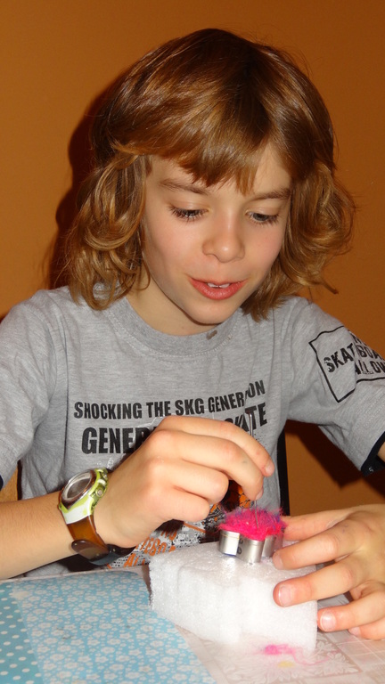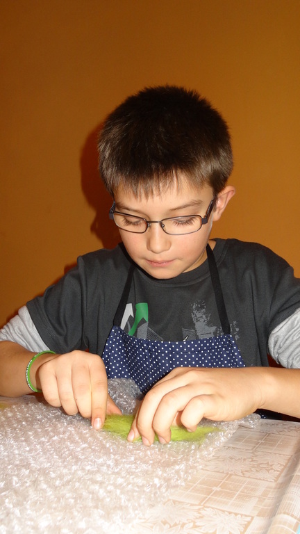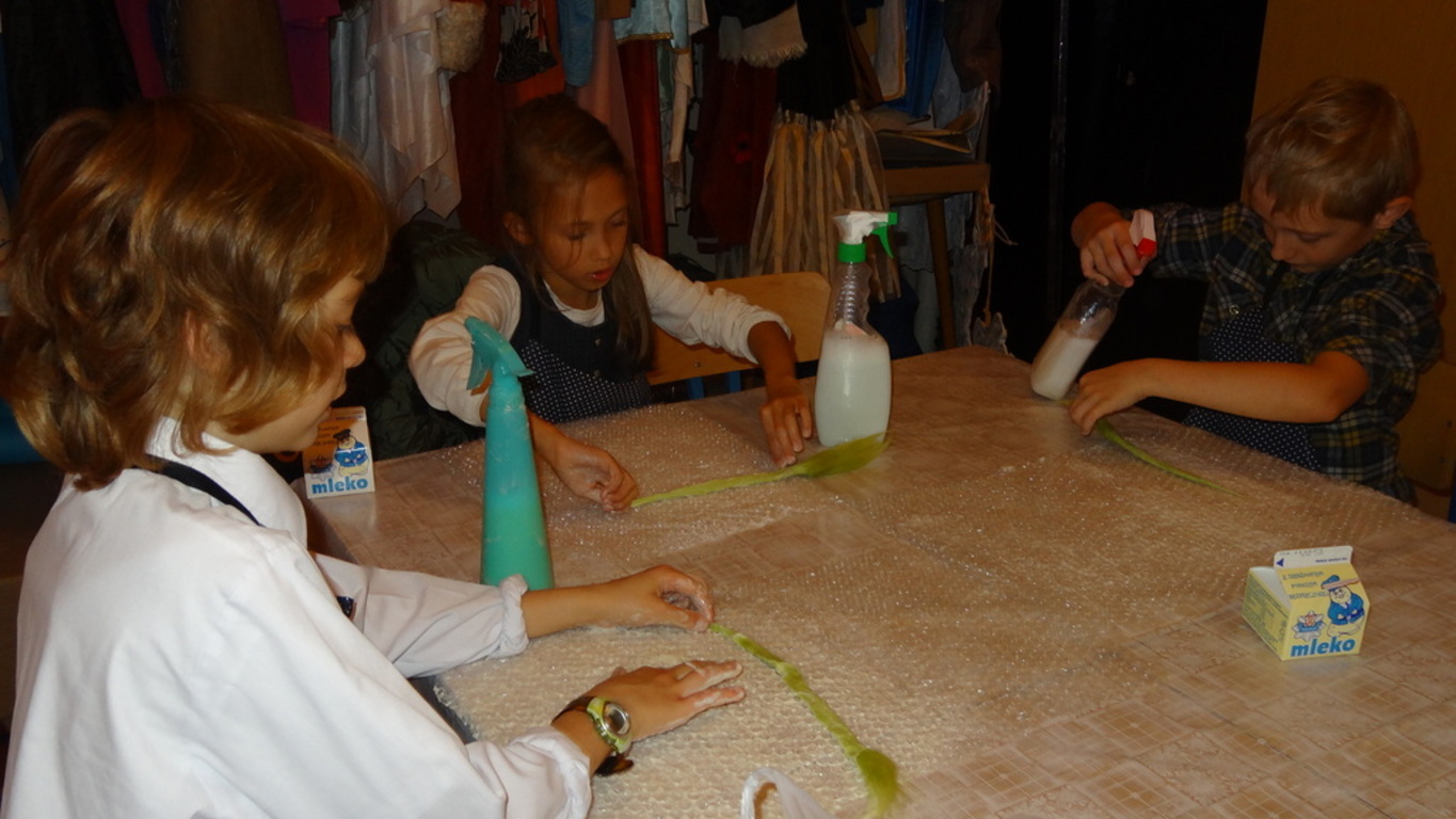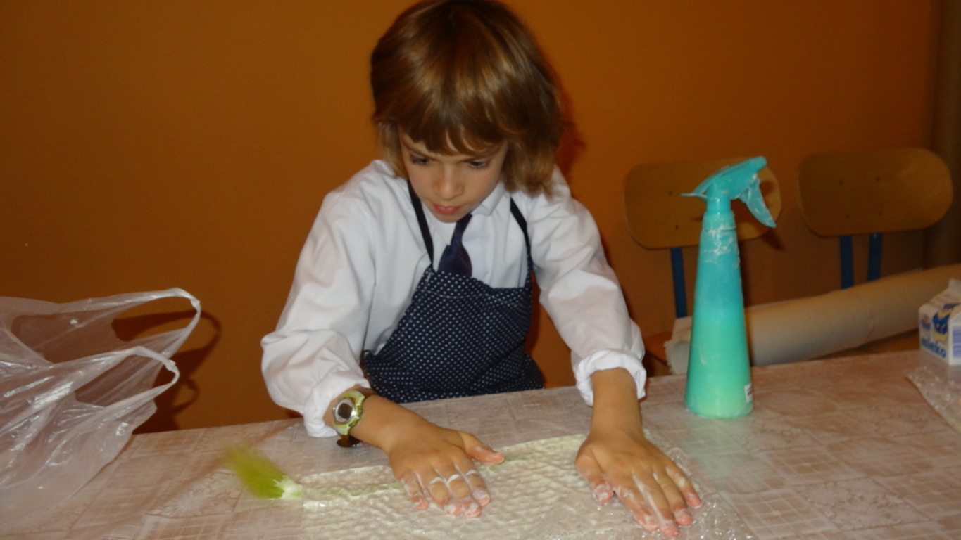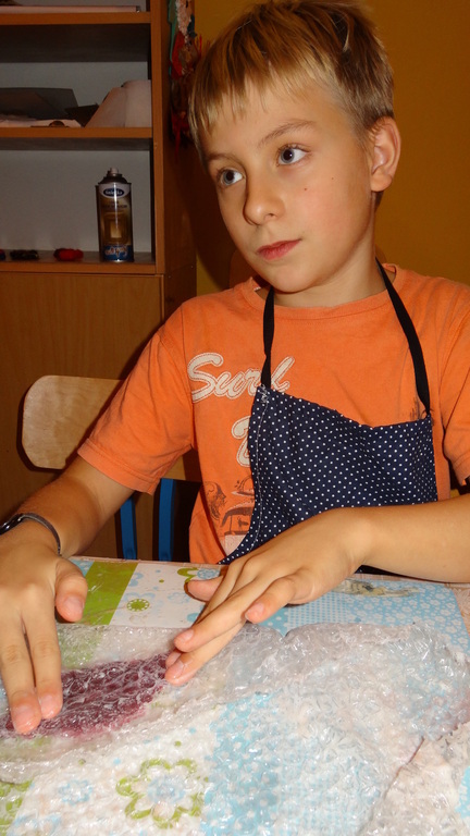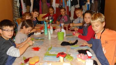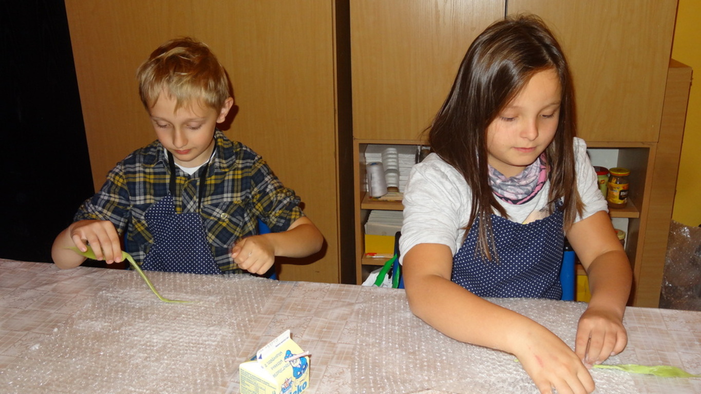 Cotygodniowo 14 par sprawnych rączek uczniów klas III SP spotyka się na zajęciach, by spróbować swych sił, w nowych i oryginalnych technikach plastycznych. Wielkim zainteresowaniem cieszyło się filcowanie. Młodzi artyści z zaangażowaniem podjęli wyzwanie filcowania na sucho i mokro. Miło było patrzeć jak bezkształtna wełna czesankowa zmienia swoją postać stając się ozdobnymi kwiatami.