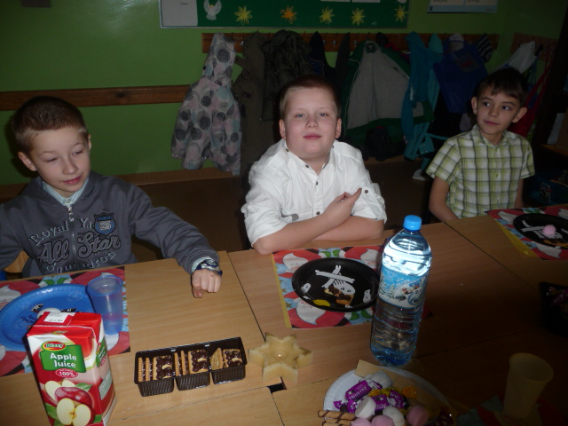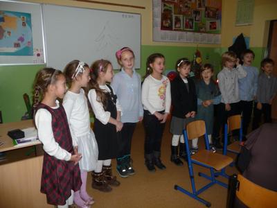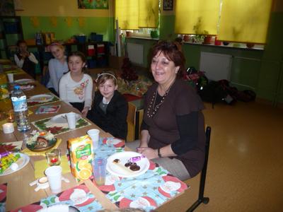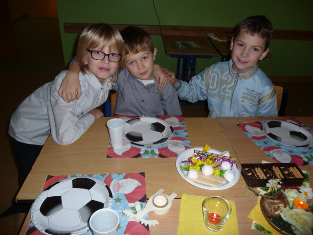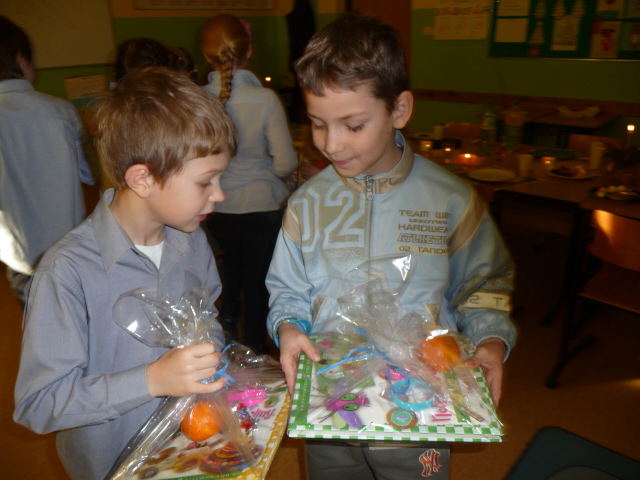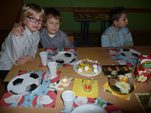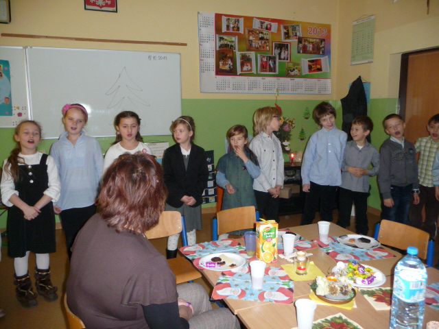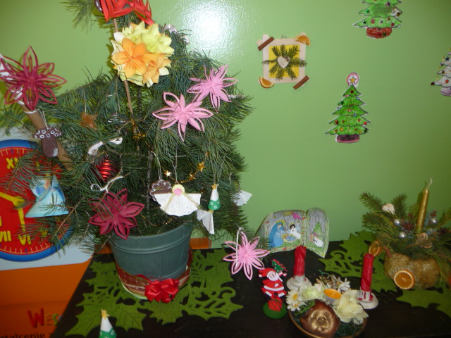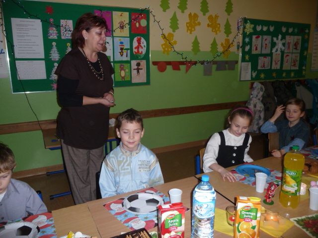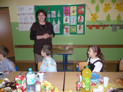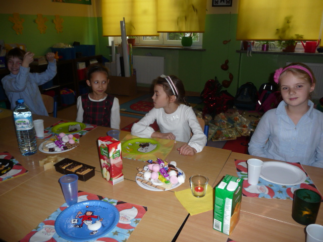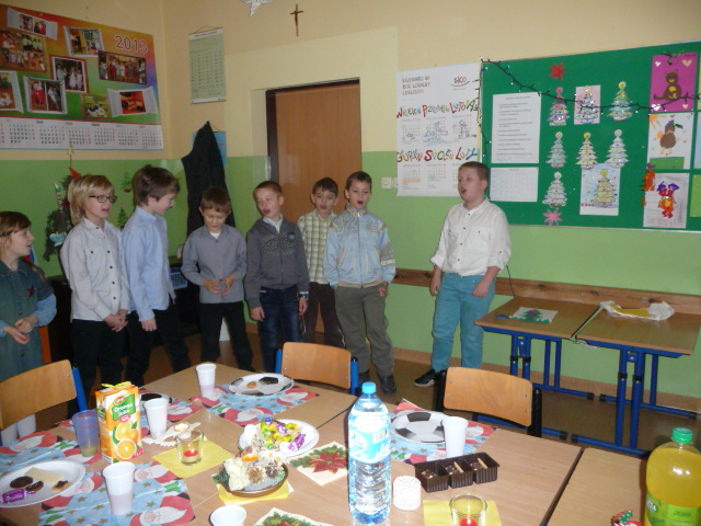 W okresie przedświątecznym odbyły się, w naszej szkole, wigilijne spotkania. Uczniowie, razem z wychowawcami, wspólnie przygotowywali świąteczny stół. Pojawiły się na nim pierniki, mandarynki oraz inne przysmaki związane ze świętami Bożego Narodzenia. Palące się świece tworzyły uroczysty nastrój spotkania. Tradycyjnie zostawiliśmy puste krzesło dla gościa. Ktoś zapukał do naszych drzwi. Była to Pani Dyrektor, która chciała nam złożyć życzenia. Opowiedziała nam piękną legendę o tym, jak niedźwiedź ubierał choinkę dla Pana Jezusa. Potem przyszedł jeszcze jeden gość. Było bardzo miło i serdecznie. Śpiewaliśmy kolędy i pastorałki, które wprowadziły nas w niepowtarzalny czas Bożego Narodzenia.