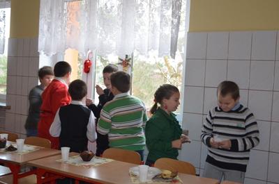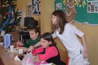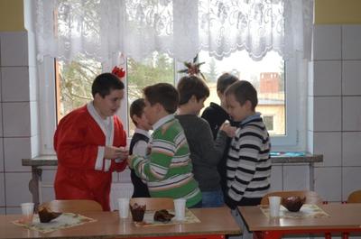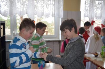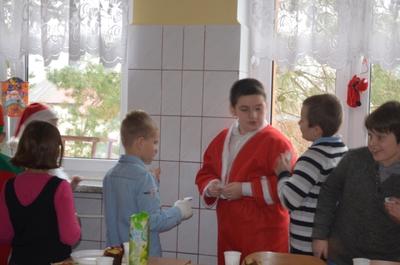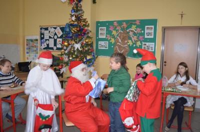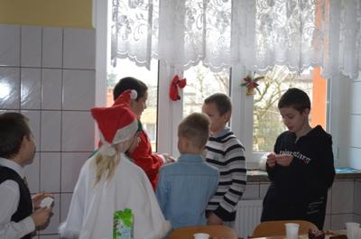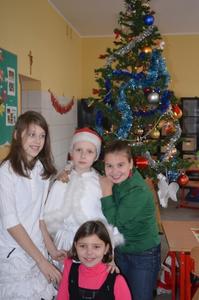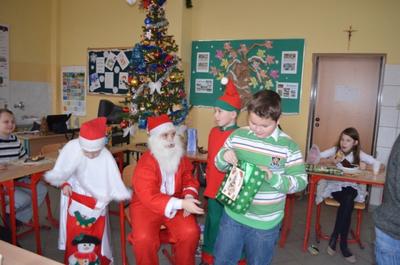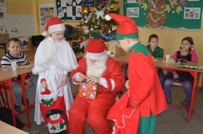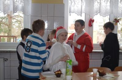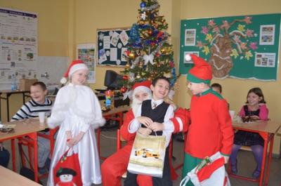 20 grudnia 2013 roku był dla czwartoklasistów dniem szczególnym. Po kilku godzinach nauki uczniowie klasy czwartej przygotowali klasowe spotkanie wigilijne. Chętne dzieci włączyły się aktywnie w przygotowanie nastrojowego spotkania. Uczniowie zadbali o kolędy, opłatek, elegancki stół, świąteczne łakocie i kolorową choinkę. Dopełnieniem nastroju były prezenty, które tym razem dzieci rozdawały same w przebraniu Świętego Mikołaja, Elfa i Śnieżynki. Młodzi „aktorzy” wczuli się w rolę wyśmienicie, dzięki czemu wszystkim udzieliła się świąteczna atmosfera.