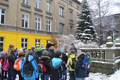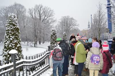 Wspaniała październikowa pogoda, która pozwoliła uczniom z klasy 4 i 5 szkoły podstawowej na jesienne zwiedzanie Poznania zachęciła nas do zorganizowania podobnego wyjazdu w sezonie zimowym. Tym razem aura również nam sprzyjała. Świeży, długo oczekiwany przez dzieci śnieg, dodawał uroku miejscom, o których z niezwykłym zaangażowaniem opowiadała nasza nauczycielka języka polskiego pani Hanna Sosińska. Spacer, podczas którego zobaczyliśmy m.in. pomnik Hipolita Cegielskiego, miejsce usytuowania Bramy Wrocławskiej czy szopkę w kościele franciszkanów, poprzedzony był udziałem w spektaklu teatralnym pt. „W krainie mitów”. Teatr okazał się świetnym sposobem na inną i ciekawą formę lekcji historii. Po powrocie z wycieczki na uczniów czekał quiz z wiadomości, które zostały dzieciom przedstawione podczas wyjazdu. Najlepszym spośród trzech klas okazał się Kacper Skwarek z klasy 6. W klasie 5 najwięcej informacji zapamiętała Zuzanna Meisner. Natomiast klasa 4 popisała się największą liczbą uczniów, którzy zdobyli punktacje z górnego pułapu. Brawa dla najmłodszych, bowiem okazali się najlepszymi znawcami historii Poznania! W klasie 4 najwięcej punktów uzyskali Gabrysia Głowska i Hubert Pyskło. Zwycięzcy otrzymali słodkie drobiazgi i pamiątkowe dyplomy.