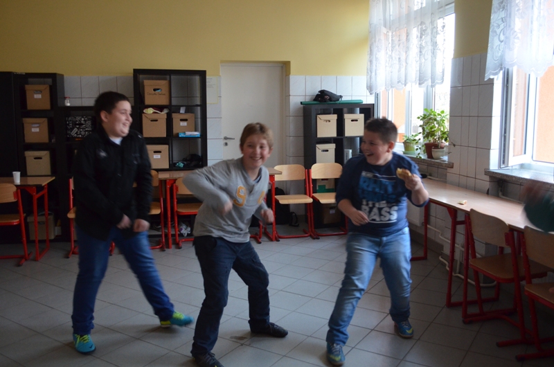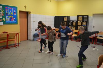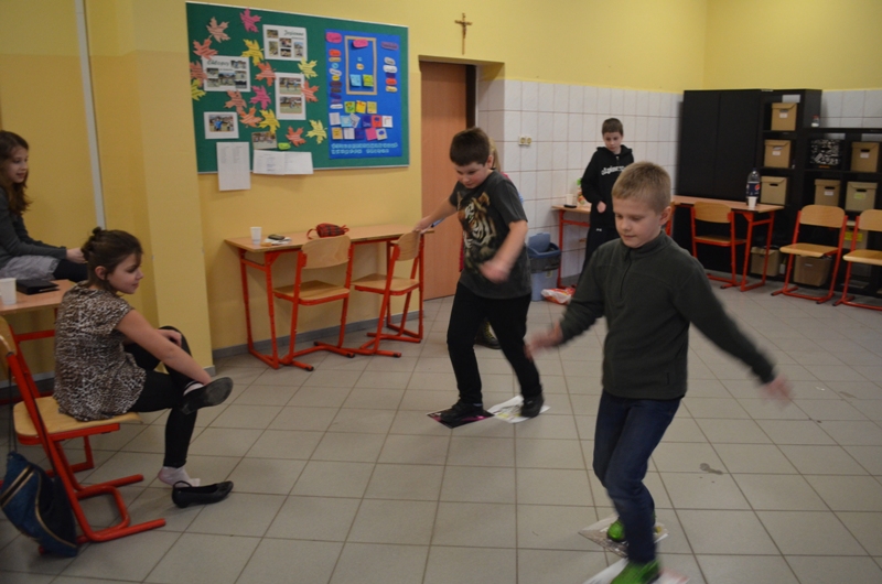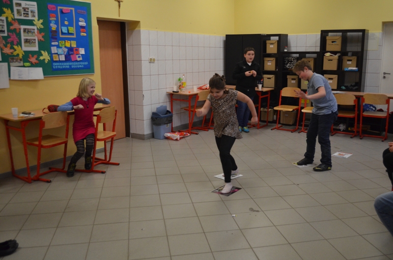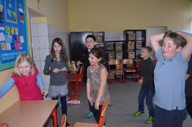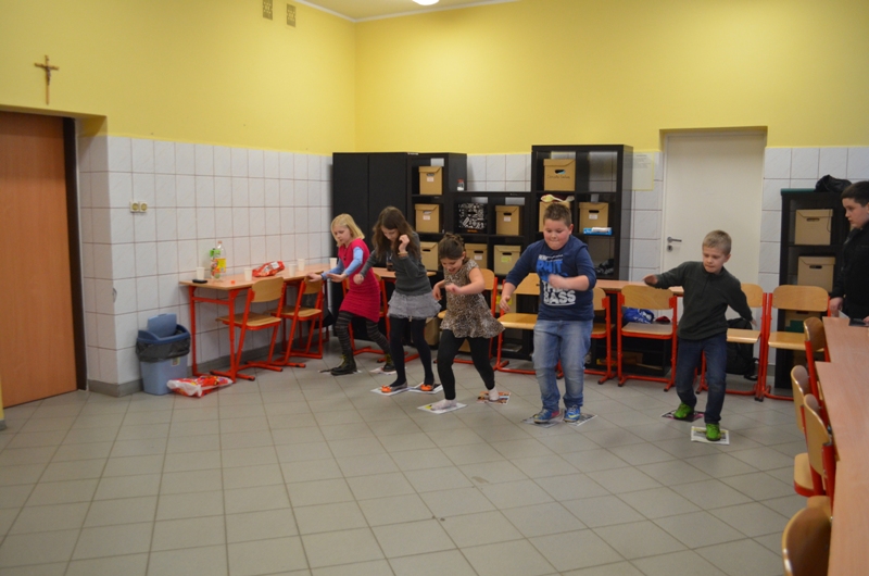 Nie ma karnawału bez balu. W tym roku uczniowie klasy czwartej zrezygnowali z przebrań. Czyżby poczuli się już dorośli ? Przed imprezą dziewczęta „uruchomiły” kącik piękności i wyczarowały imponujące makijaże. Chłopcy niestety trochę narzekali na zapach lakieru do paznokci, ale nie mieli wiele czasu na marudzenie, ponieważ ochoczo zajęli się przygotowaniem sali i muzyki. Już o godzinie szesnastej wszyscy byli gotowi do zabawy. Impreza się zaczęła. Tradycyjne tańce przeplatane były grami zręcznościowymi i zadaniami integracyjnymi. Gdy grupę dopadało zmęczenie wszyscy posilali się świeżymi tostami. Zabawa była na tyle intensywna, że dzieci zjadły 3 bochenki chleba tostowego:-)