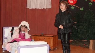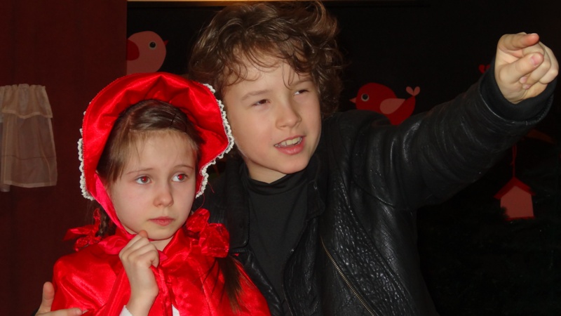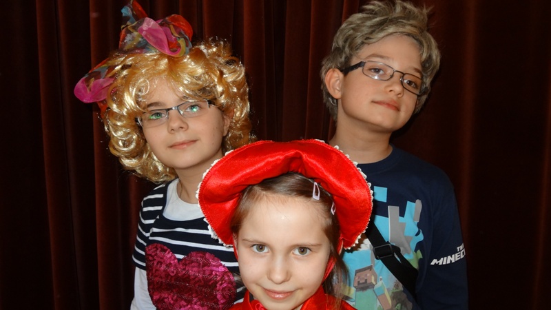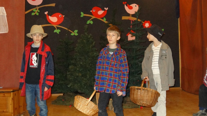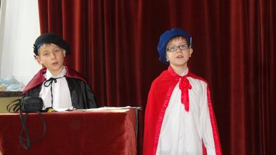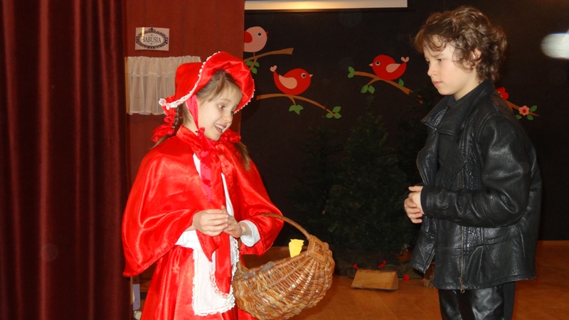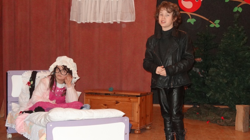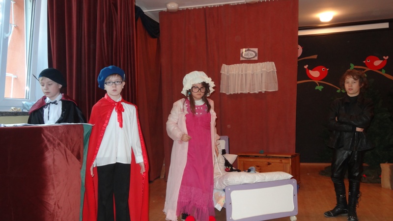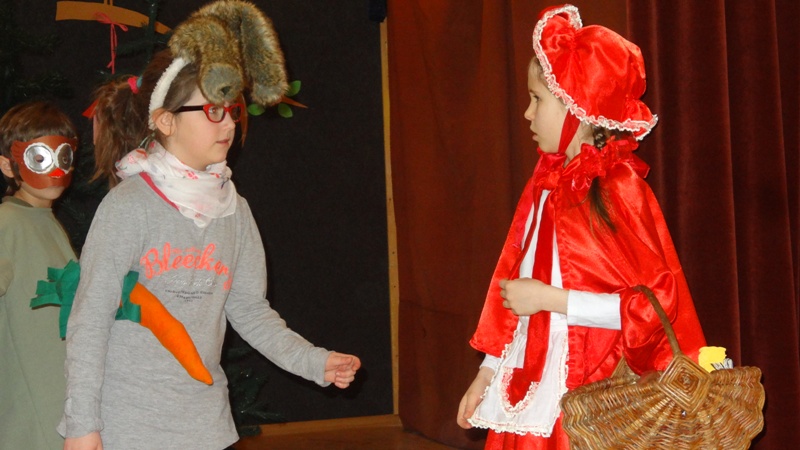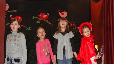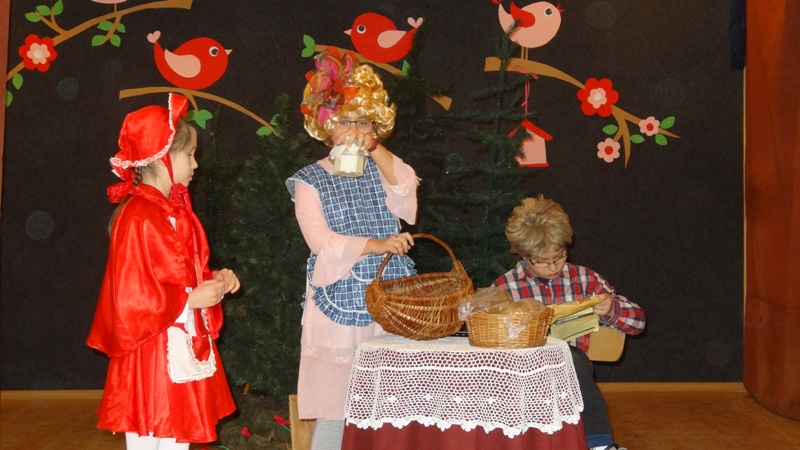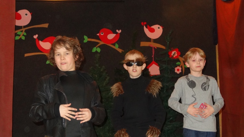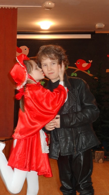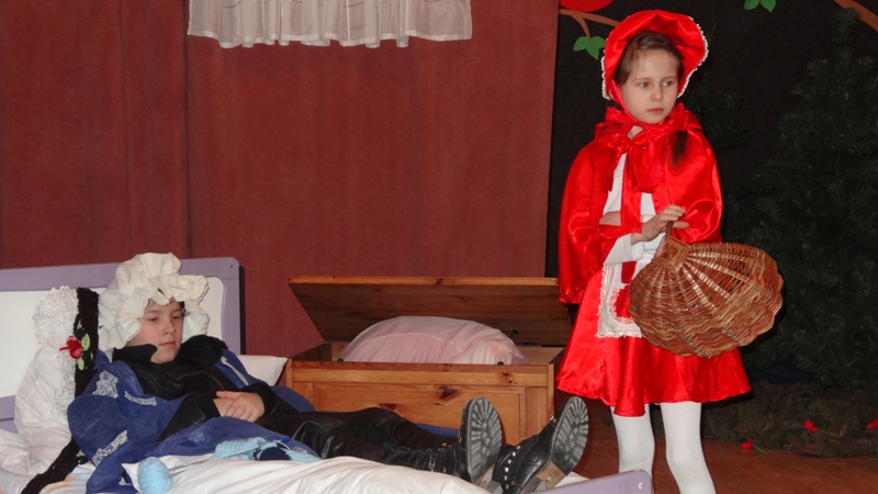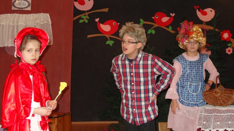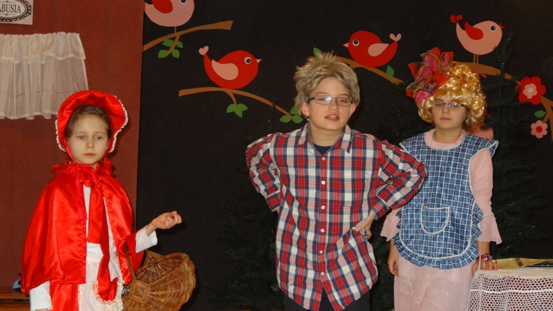 Hojdy- bojdy, czyli przedstawienie o tym, jak jeden wilk się naciął miało swoją premierę 26 lutego 2014r. Występujący w nim uczniowie klasy IIIA zaprezentowali swoje zdolności aktorskie widowni, która wypełniła po brzegi aulę Zespołu Szkół. Młodzi artyści rozbawiali publiczność teksami mówionymi gwarą poznańską. Śpiewano i tańczono, grano na flażolecie i saksofonie. Łatwo wpadające w ucho piosenki oraz wymowne stroje dopełniły dzieła. Tygodnie ciężkiej pracy zwieńczył zasłużony sukces. Przedstawienie przygotowane przez Renatę Szpindor z oprawę muzyczną Stanisława Horbika i Elżbiety Brussy spodobało się przybyłym. Piotr Nagadowski po raz kolejny doskonale sprawdził sił w roli dźwiękowca. Nieoceniona okazała się również pomoc uczennic klasy I gimnazjum oraz rodziców uczniów klasy IIIA, którym serdecznie dziękuję.