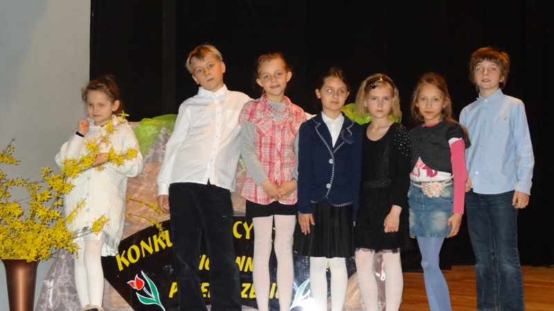 Gminny konkurs recytatorski „Wiosenne Przebudzenie” w kategorii klas I-III SP należał w tym roku w do uczniów naszej szkoły. Nasi młodzi artyści zajęli wszystkie medalowe miejsca, nie zostawiając nic dla swych kolegów z sąsiednich szkół. Najlepszym okazał się Piotr Szymiec z klasy III A, a drugie miejsce przypadło w udziale Agnieszce Krasuskiej (IIIA). Gabriela Jędrzejczak (IIIB) wywalczyła trzecia pozycję, natomiast wyróżnienia otrzymały Aleksandra Pastor (kl. IIIB) oraz Kinga Bromka (kl. I). Nasi uczestniczy odznaczali się znakomitym doborem teksów, a także oryginalną interpretacja prezentowanych wierszy. Laureat Piotr Szymiec spróbuje swych szans w powiatowym konkursie, który odbędzie się 11 kwietnia w Murowanej Goślinie. Życzymy powodzenia!